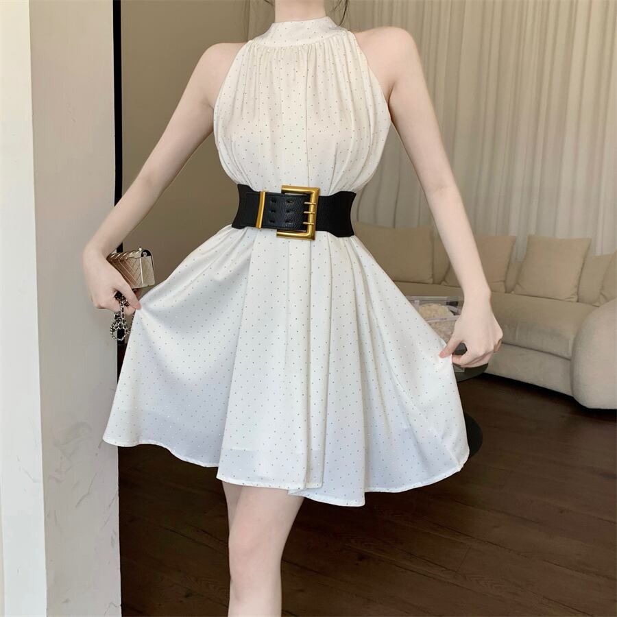 Nomikuma ダイヤモンドハンギングネックドレスレディース夏オフショルダーカジュアルノースリーブ A ラインドレス サマー 夏物 Aライン