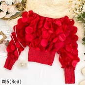 Nomikuma オフショルダートップス 3D 花びらショートスリムウエストパフスリーブシックシャツブラウスデ