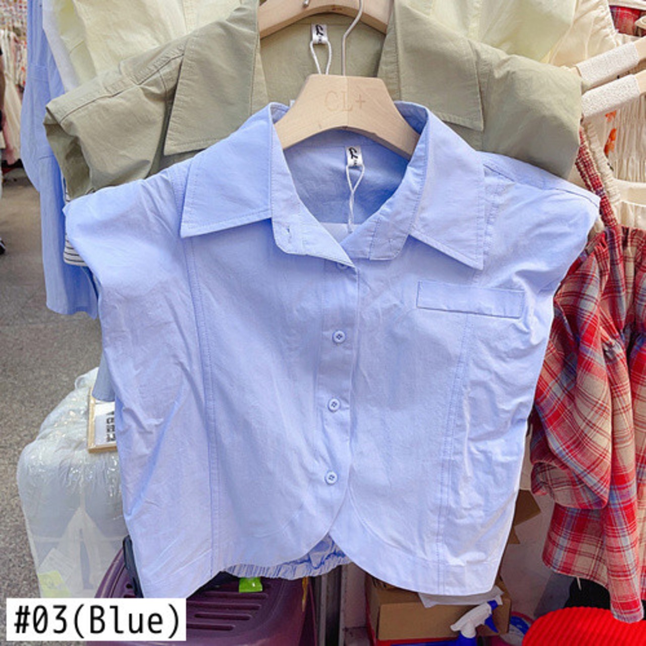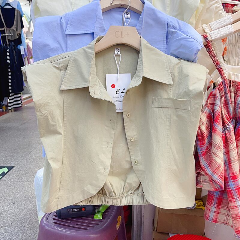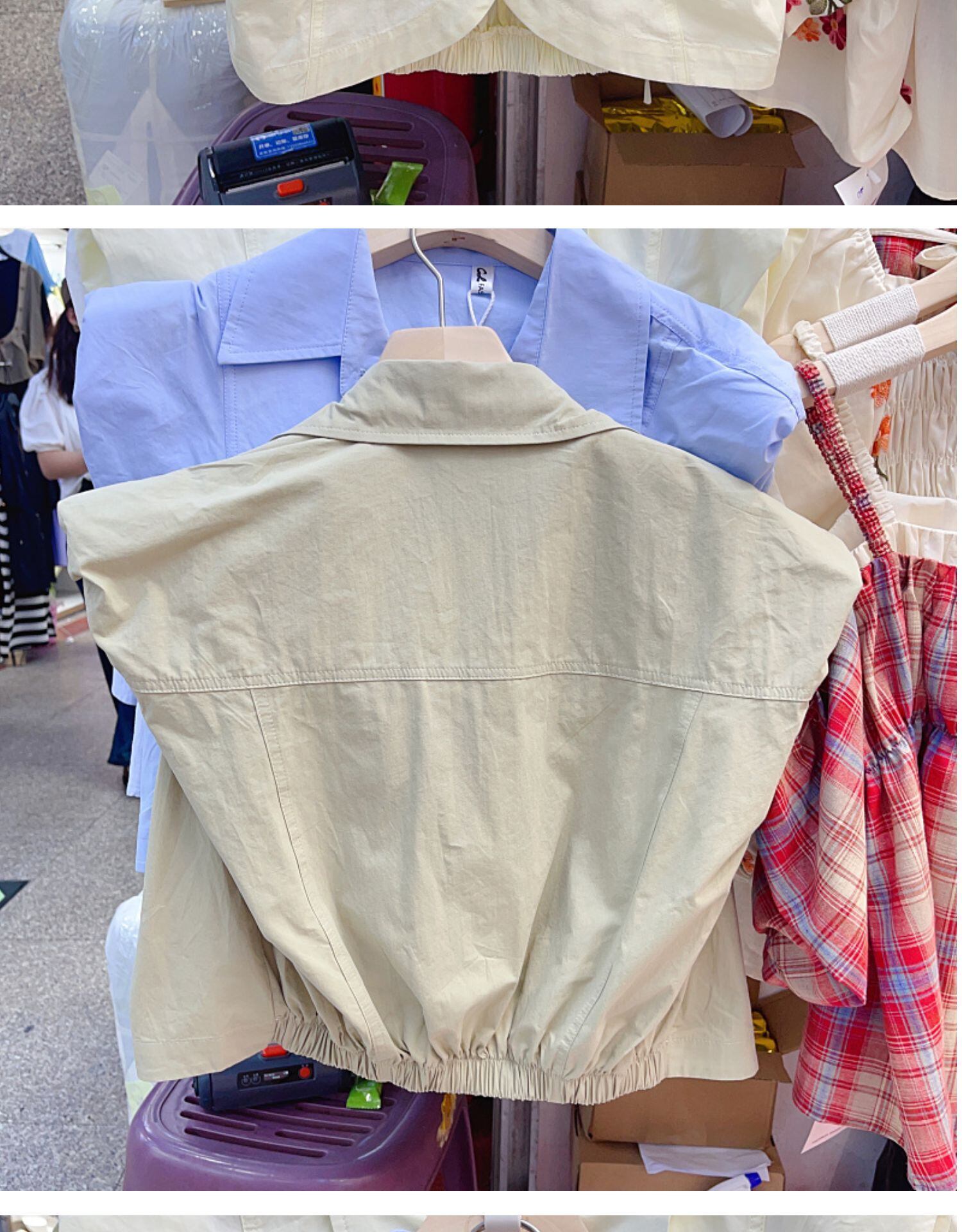 Nomikuma 春夏 シングルブレスト ショート ノースリーブ ソリッドカラー シャツ トップス レディース スリム ブラウス 半袖 ハーフスリーブ スプリング 春物 サマー 夏物