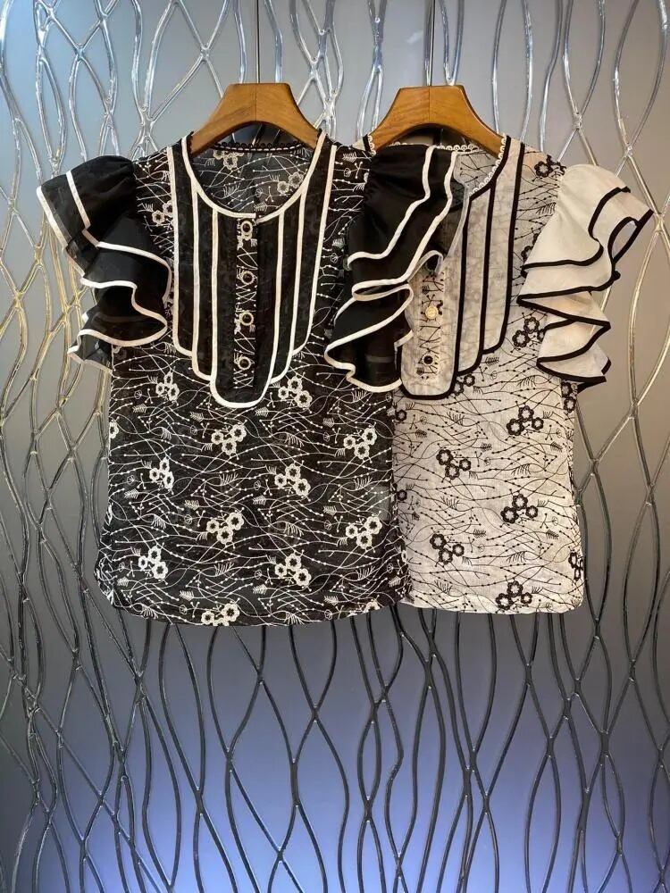 Nomikuma フリルノースリーブ Tシャツ夏 Y2k トップシック O ネックグラフィック Tシャツ服 サマー 夏物 Oネック