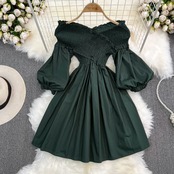 Nomikuma ランタンスリーブオフショルダーストラップレスひだスリムウエスト A ラインドレス夏 Vestidos サマー 夏物 Aライン