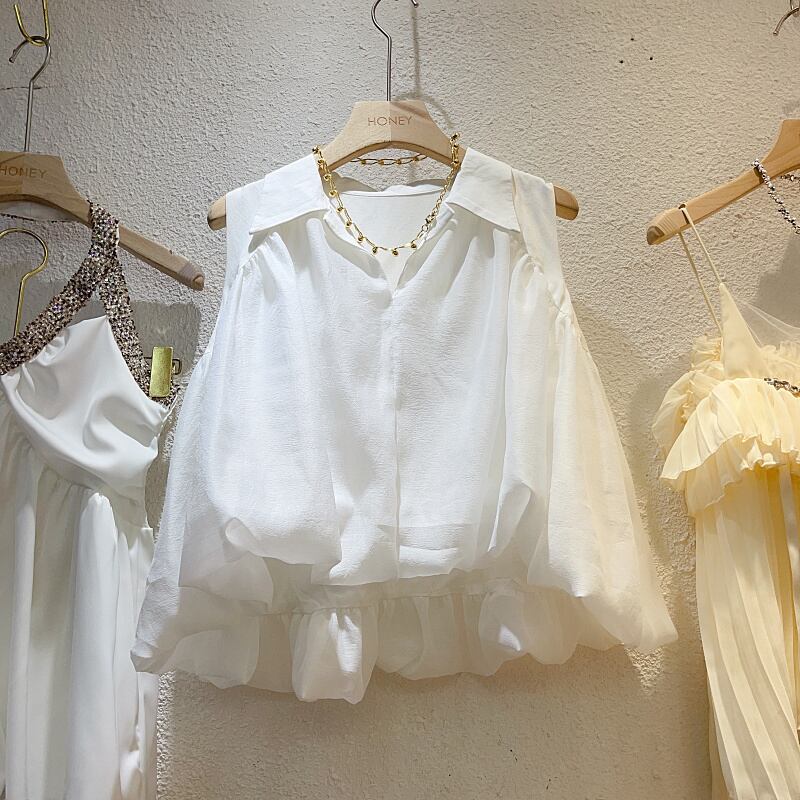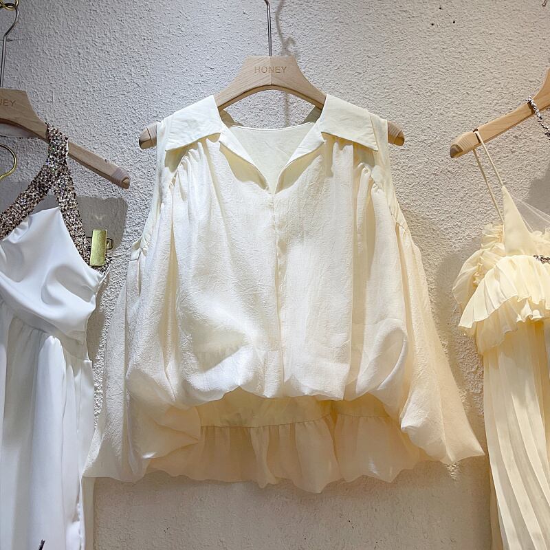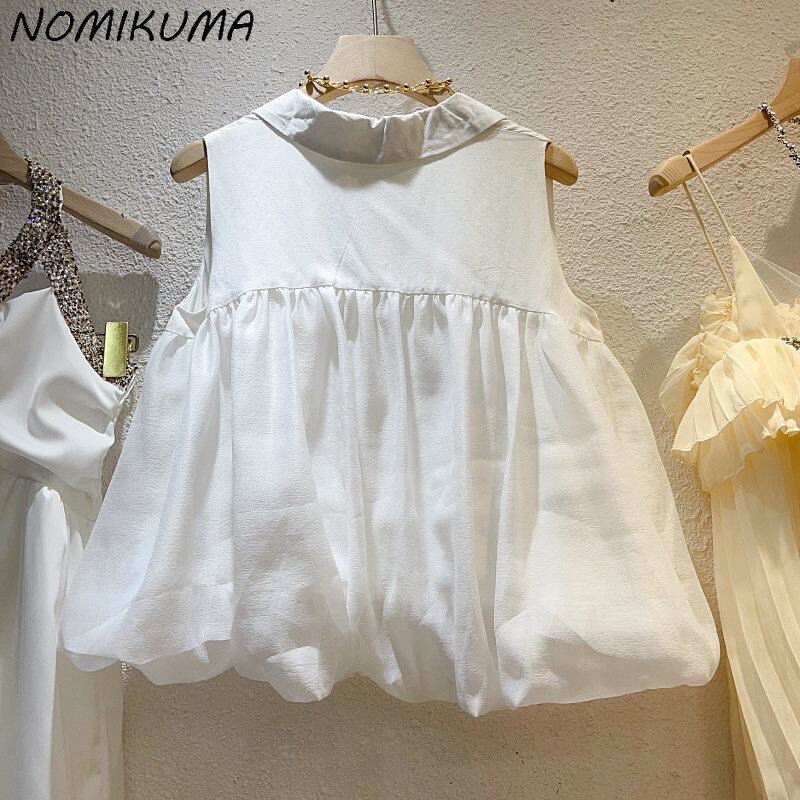 Nomikuma ターンダウンカラー因果ソリッドプルオーバートップシックブラウスノースリーブ En Oferta Y Envío Gratis ソリッドカラー
