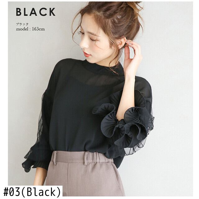Nomikuma シックメッシュパッチワークランタンスリーブブラウス因果 O ネックプルオーバートップス春夏シャツ スプリング 春物 サマー 夏物 Oネック