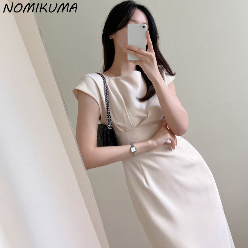 Nomikuma 夏スリムウエストボディコンドレス半袖 O ネックドレス Vestidos ショート ハーフスリーブ サマー 夏物 Oネック