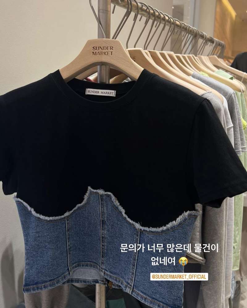 Nomikuma シック夏半袖 Tシャツトップスヒットカラー不規則デミンパッチワークグラフィック Tシャツシック O ネック Tシャツ ショート ハーフスリーブ サマー 夏物 Oネック