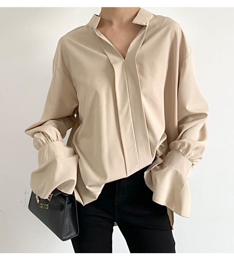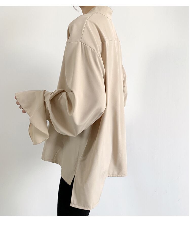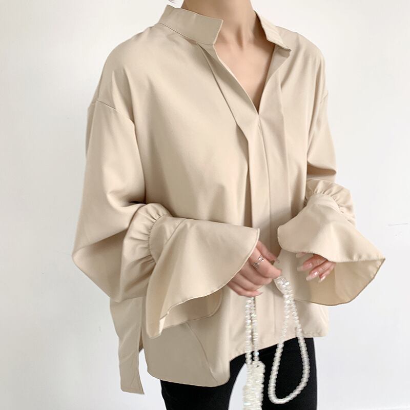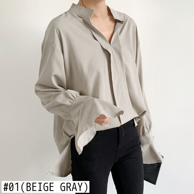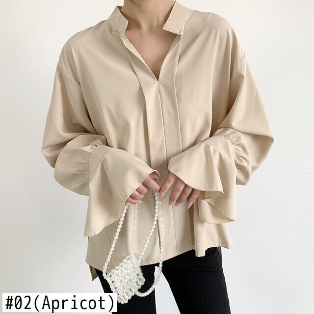 Nomikuma 因果シフォンブラウスフレア長袖トップシャツ春夏ソリッドデモーダ ロング スプリング 春物 サマー 夏物 ソリッドカラー