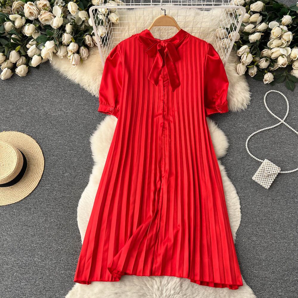 Nomikuma 夏因果 A ラインプリーツドレスシックパフスリーブ O ネックドレス Vestidos デ サマー 夏物 Oネック Aライン