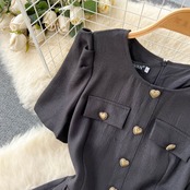 Nomikuma スリムウエスト A ライン Vestidos 半袖 O ネックドレスシックドレス ショート ハーフスリーブ Oネック Aライン