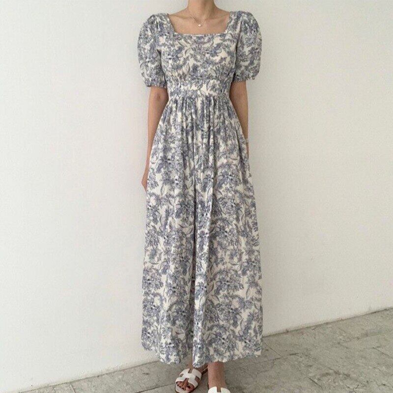 Nomikuma 夏レトロラウンドネックプリーツウエスト痩身インクプリント半袖ドレス A ラインドレス ショート ハーフスリーブ サマー 夏物 Oネック Aライン