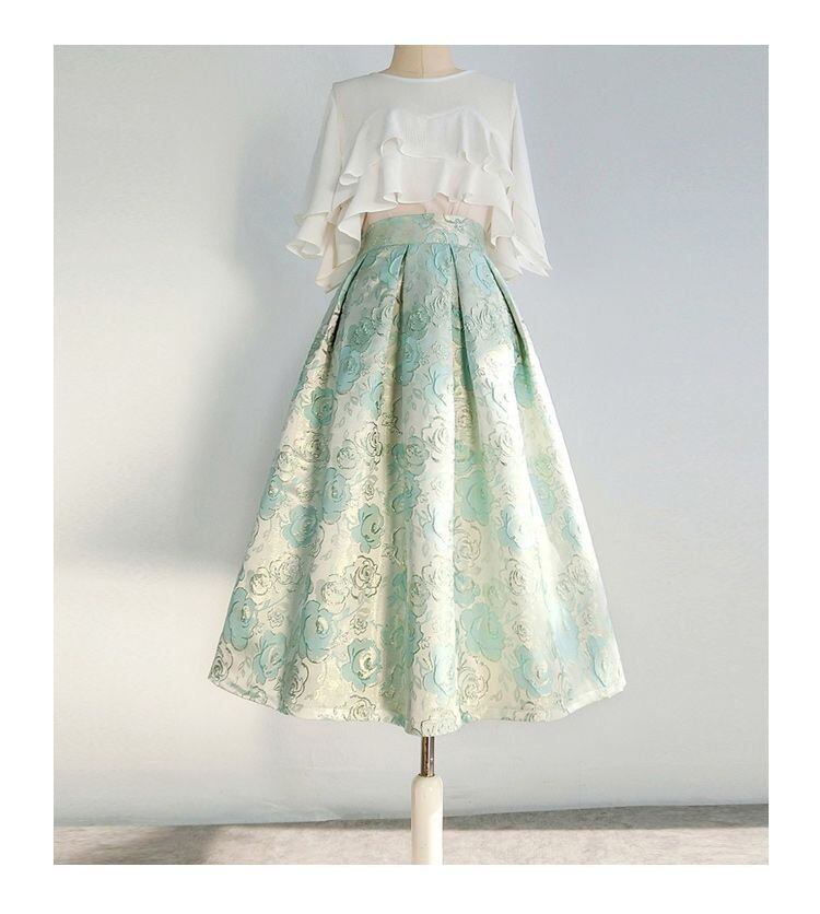 Nomikuma シック刺繍ジャカードスカート春夏ウエストカジュアル A ラインスカート段 Faldas スプリング 春物 サマー 夏物 Aライン