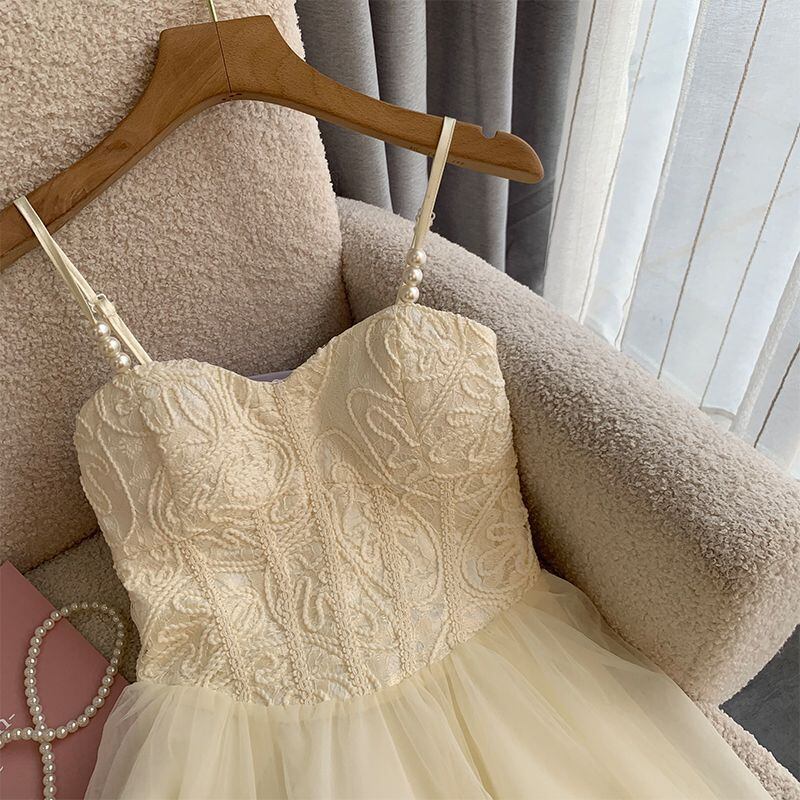 Nomikuma スリムウエストメッシュパッチワーク A ラインスリングドレス春夏スパゲッティストラップドレス スプリング 春物 サマー 夏物 Aライン