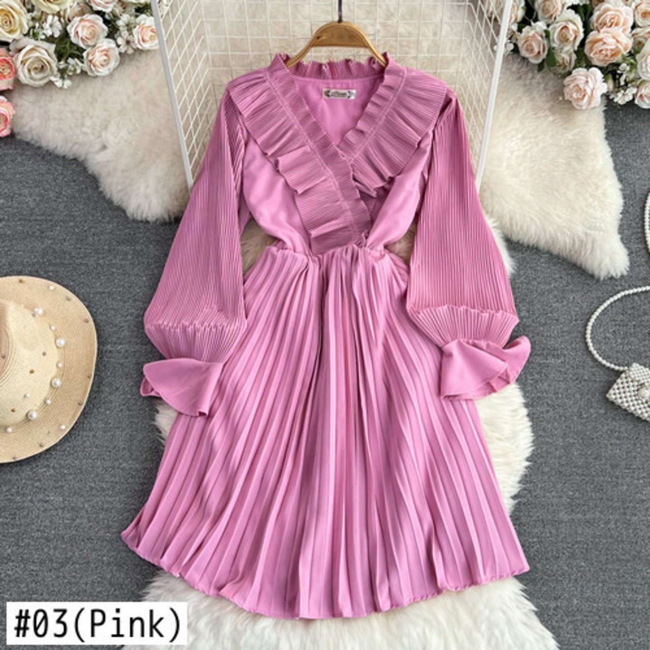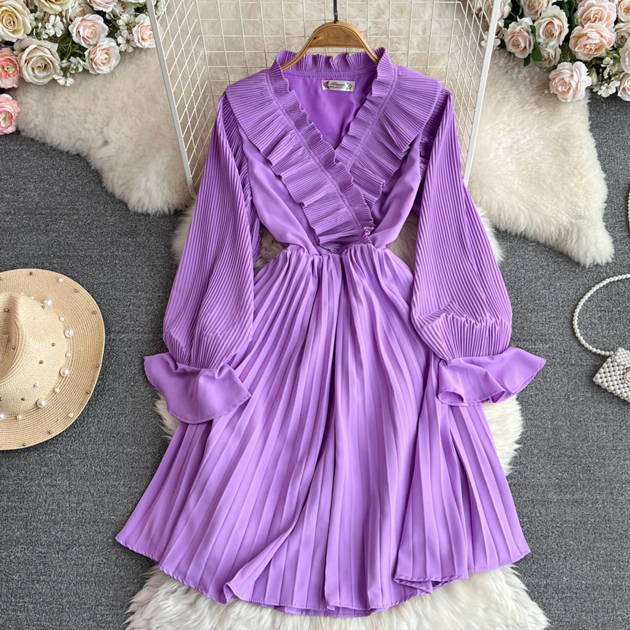 Nomikuma パフスリーブ V ネックドレス春フリルパッチワークドレススリムウエスト A ラインプリーツ Vestidos スプリング 春物 Vネック Aライン
