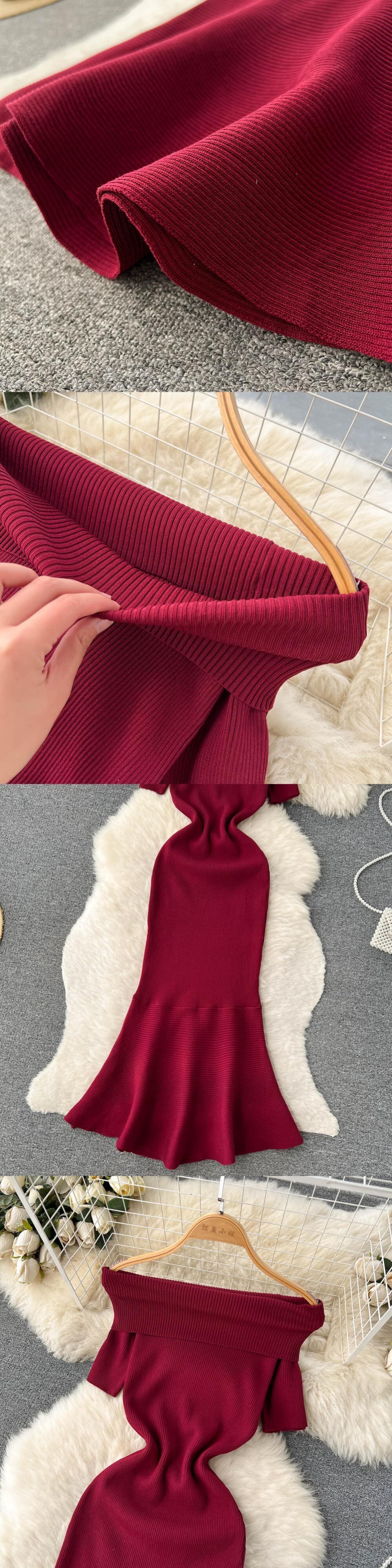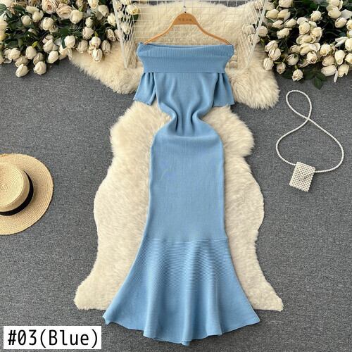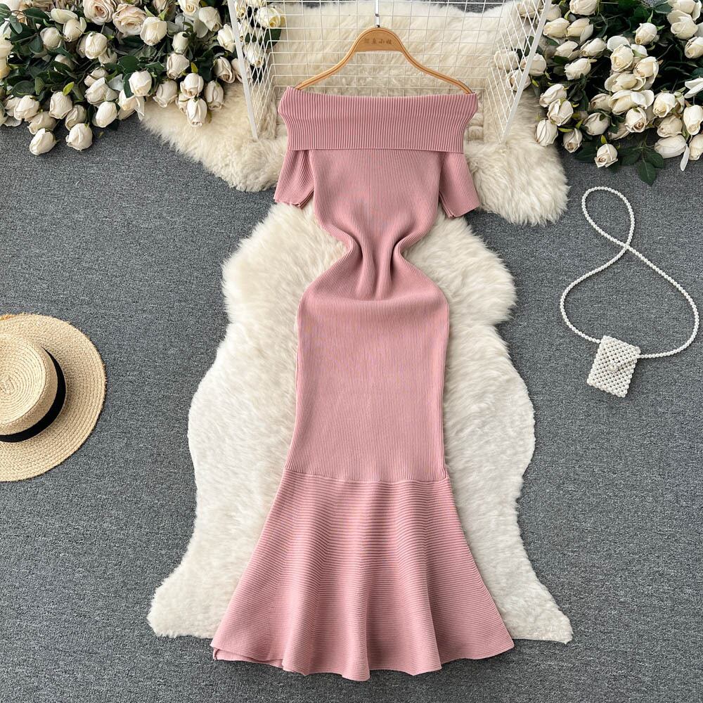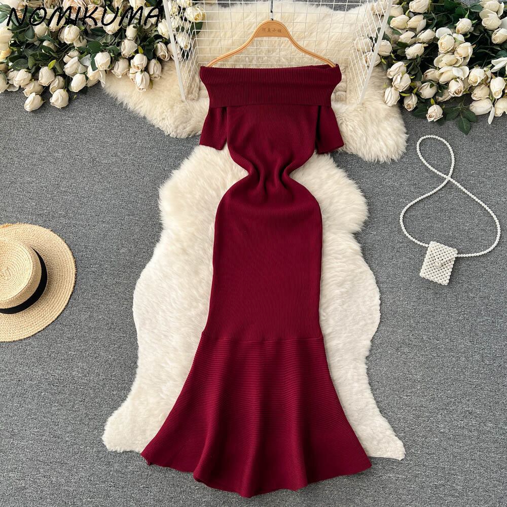 Nomikuma オフショルダースリムウエストセクシーセーターマーメイドドレス夏半袖ソリッドニットボディコーンドレス ショート ハーフスリーブ サマー 夏物 ソリッドカラー