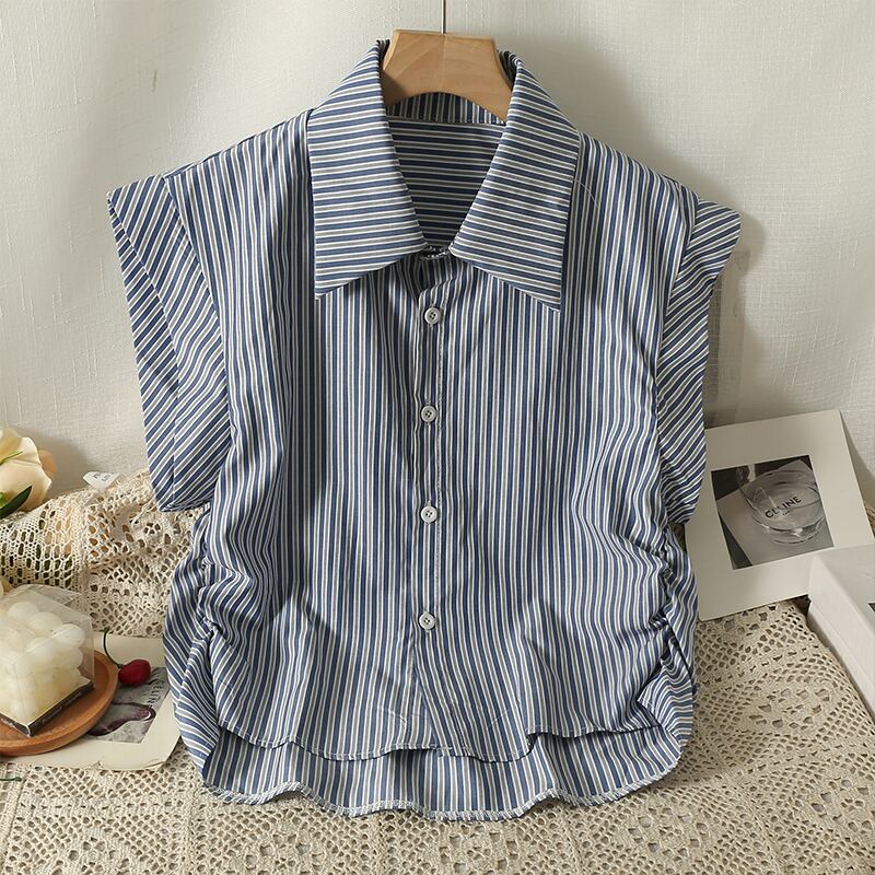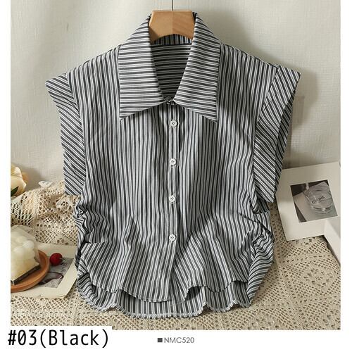 Nomikuma ストライプターンダウンカラーノースリーブブラウス夏カジュアルシックトップスシャツ サマー 夏物