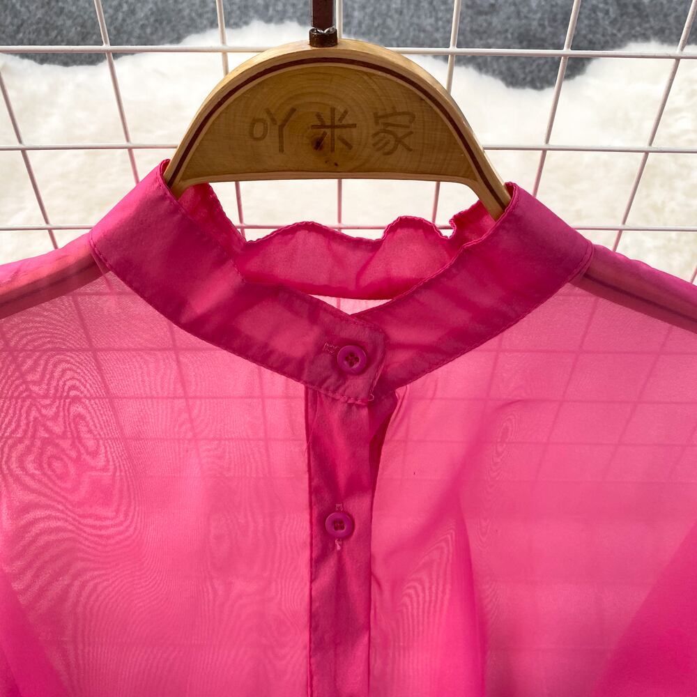 Nomikuma 半袖スタンドネックシャツシックレイヤードフリルパッチワークブラウス弓包帯スリムウエストトップス ショート リボン ハーフスリーブ