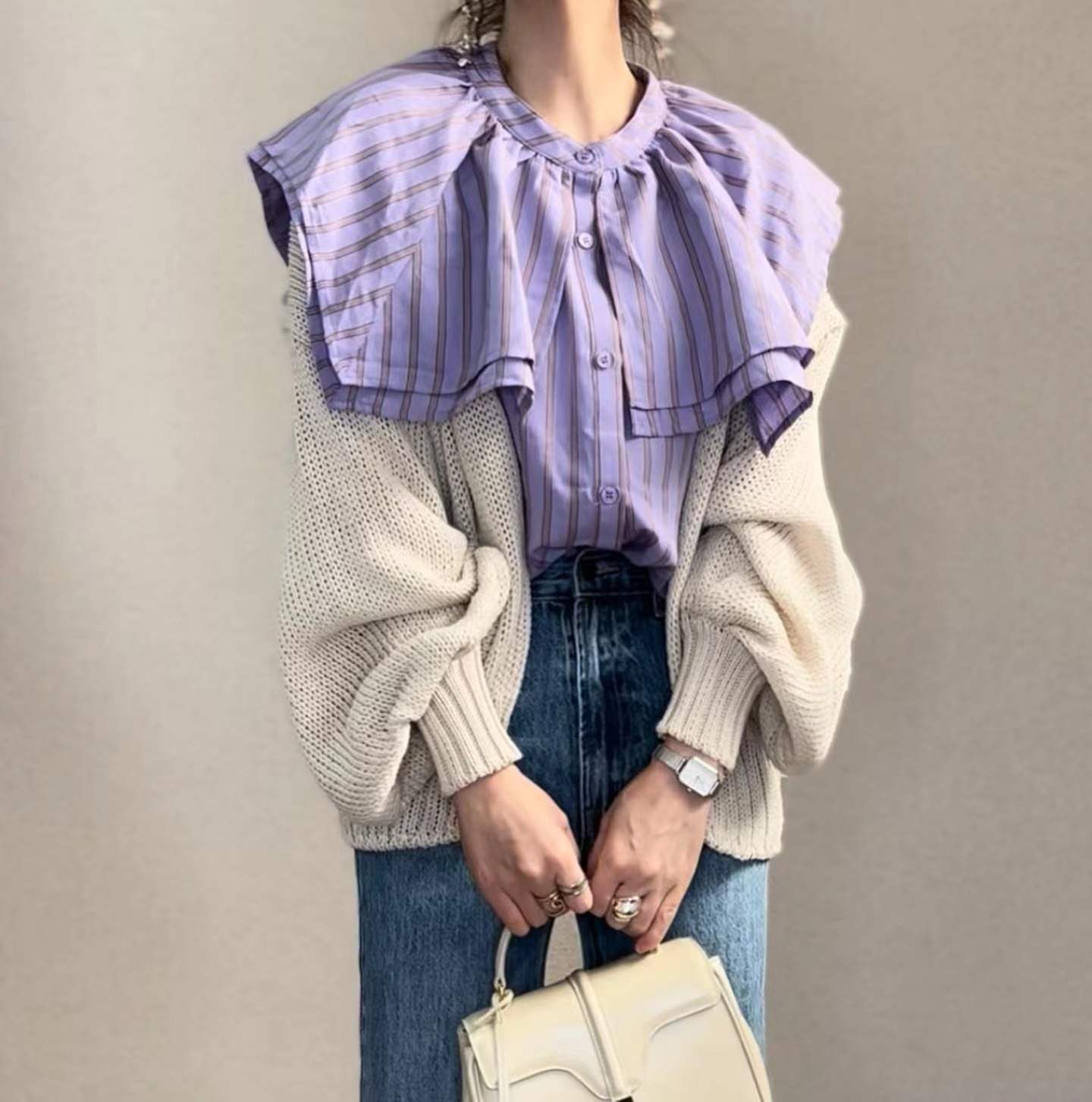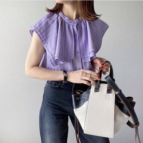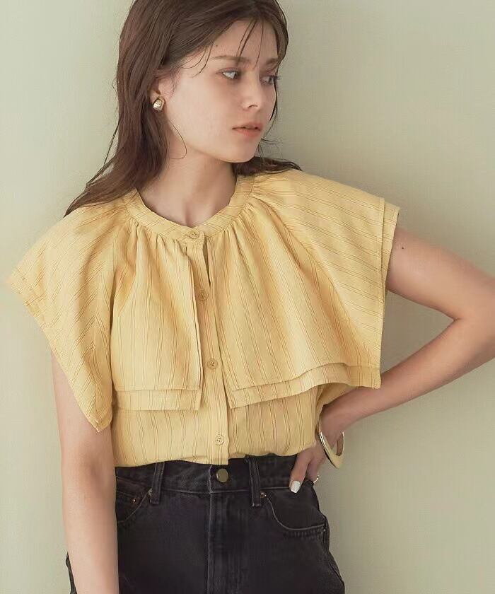 Nomikuma スタイルノースリーブダブルショールパッチワークスタンドネックジャカードストライプブラウス夏 サマー 夏物