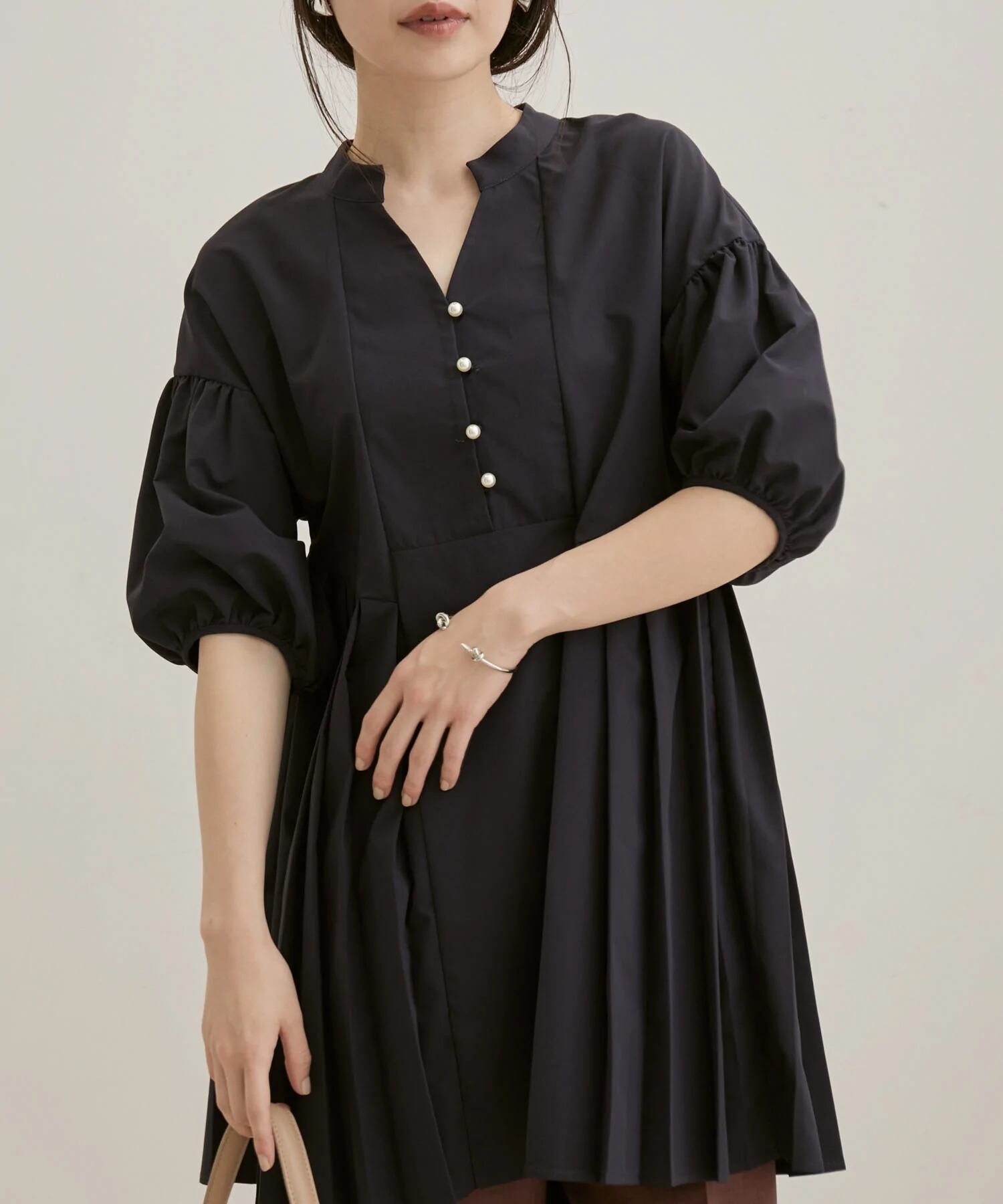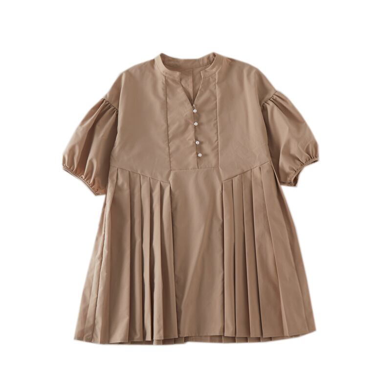 Nomikuma スタイル V ネック パフ スリーブ ビーズ ブラウス トップス 夏因果折り目甘いシャツ デ 大人ガーリー スウィート キュート カジュアル サマー 夏物 Vネック