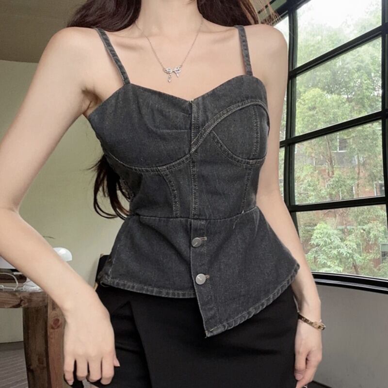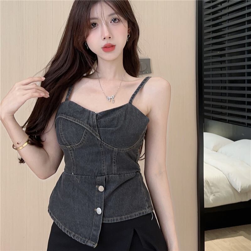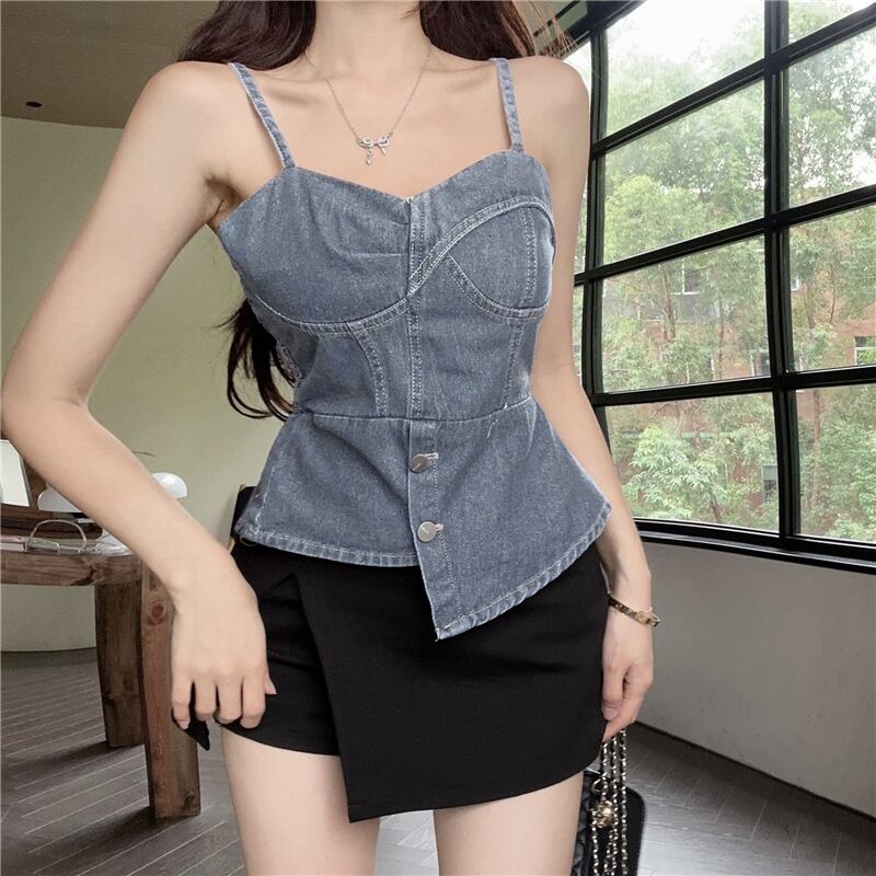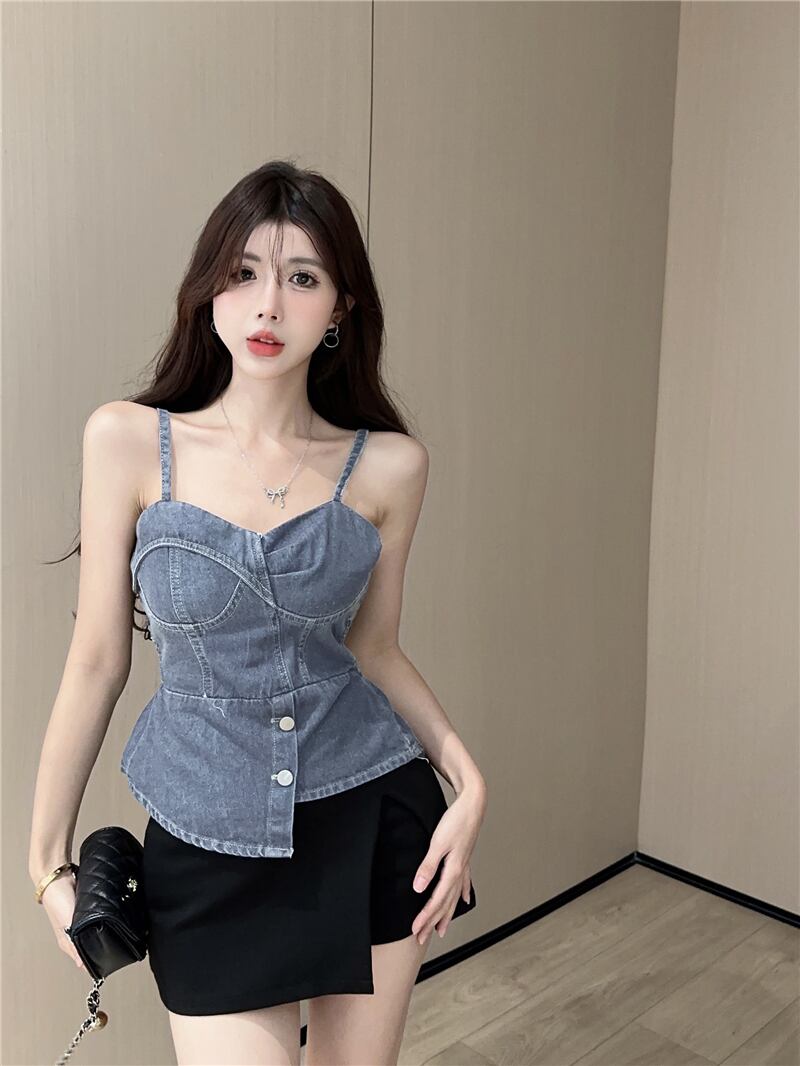 Nomikuma スパイシーガールデミンスリングベスト夏 orregulator セクシースリム Bototming タンクジーンズトップス サマー 夏物