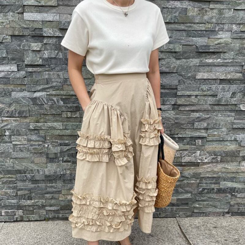 Nomikuma サマーシックフリルパッチワーク A ライン Y2k スカートウエストカジュアルロングスカート Faldas Largas 夏物 Aライン