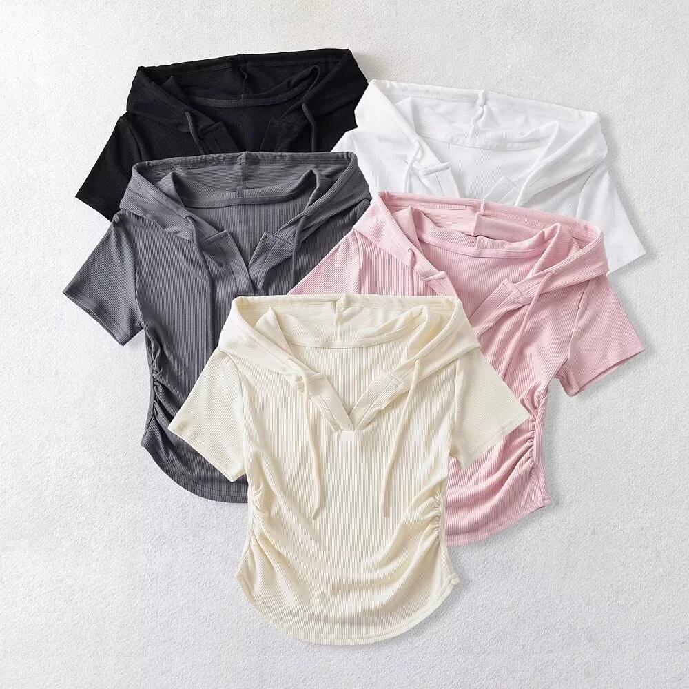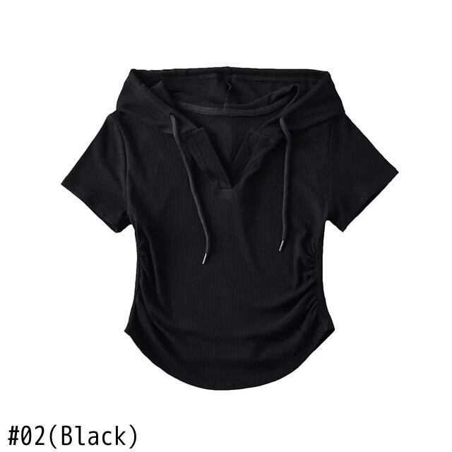 Nomikuma 不規則半袖 Tシャツ夏スリムウエストショー薄いクロップトップスガールセクシー V ネックパーカープルオーバー ショート ハーフスリーブ サマー 夏物 Vネック
