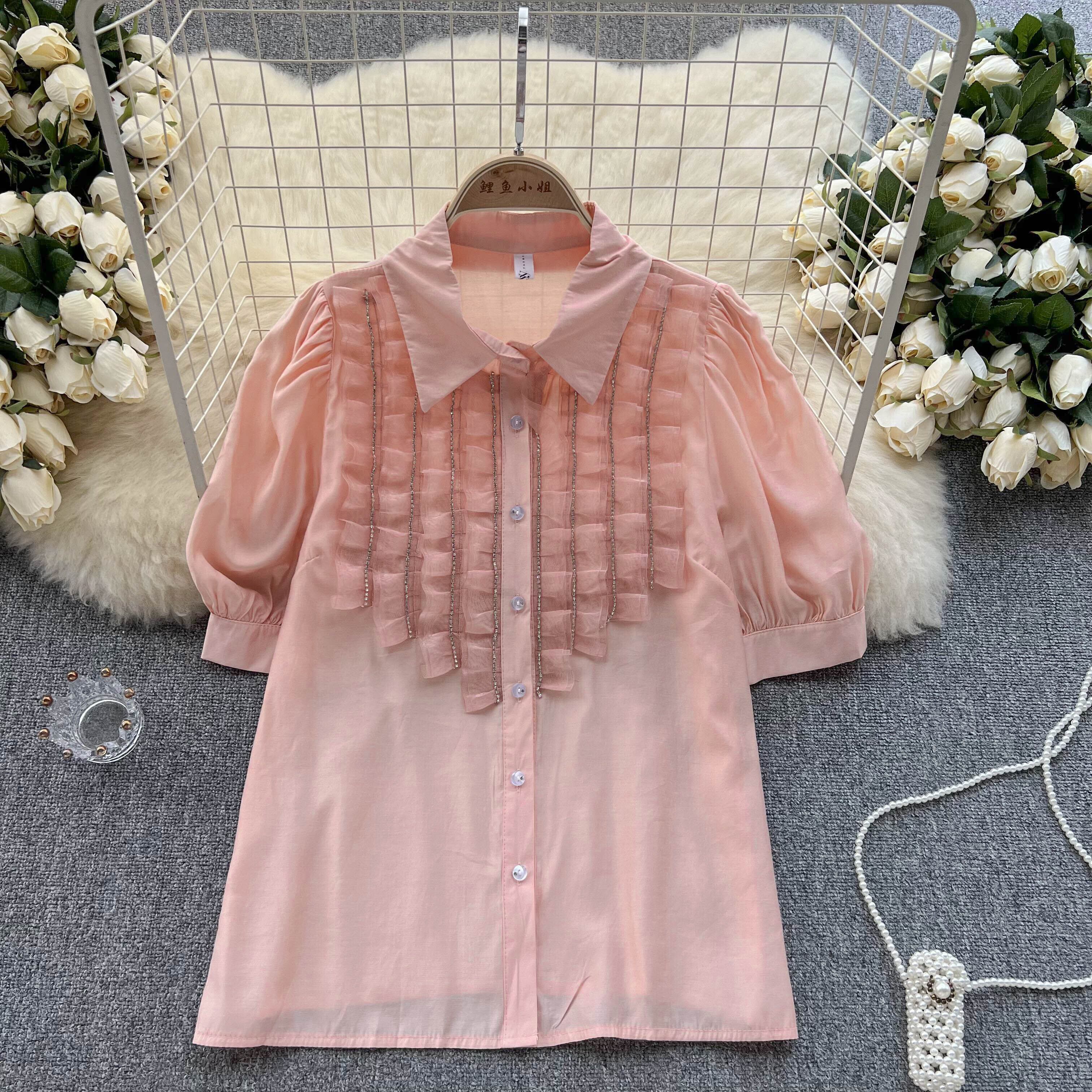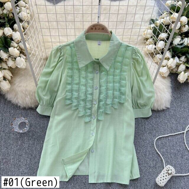 Nomikuma 夏薄手パフスリーブブラウスシックレイヤードフリルパッチワークシャツ サマー 夏物