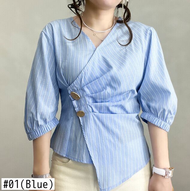Nomikuma V ネックスリムブラウス夏半袖デ不規則 Blusa トップス ハーフスリーブ サマー 夏物 Vネック