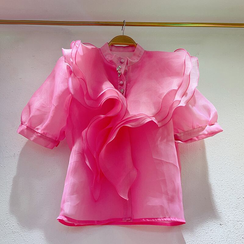 Nomikuma シックレイヤードフリルパッチワークブラウス パフスリーブ Sweet De Moda Verano es 大人ガーリー スウィート キュート カジュアル