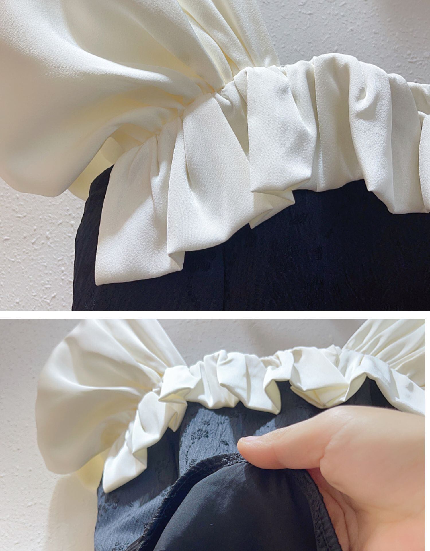 Nomikuma 夏スクエアカラージャカードショートスリムフライングスリーブシックレディーストップス サマー 夏物 スクウェア
