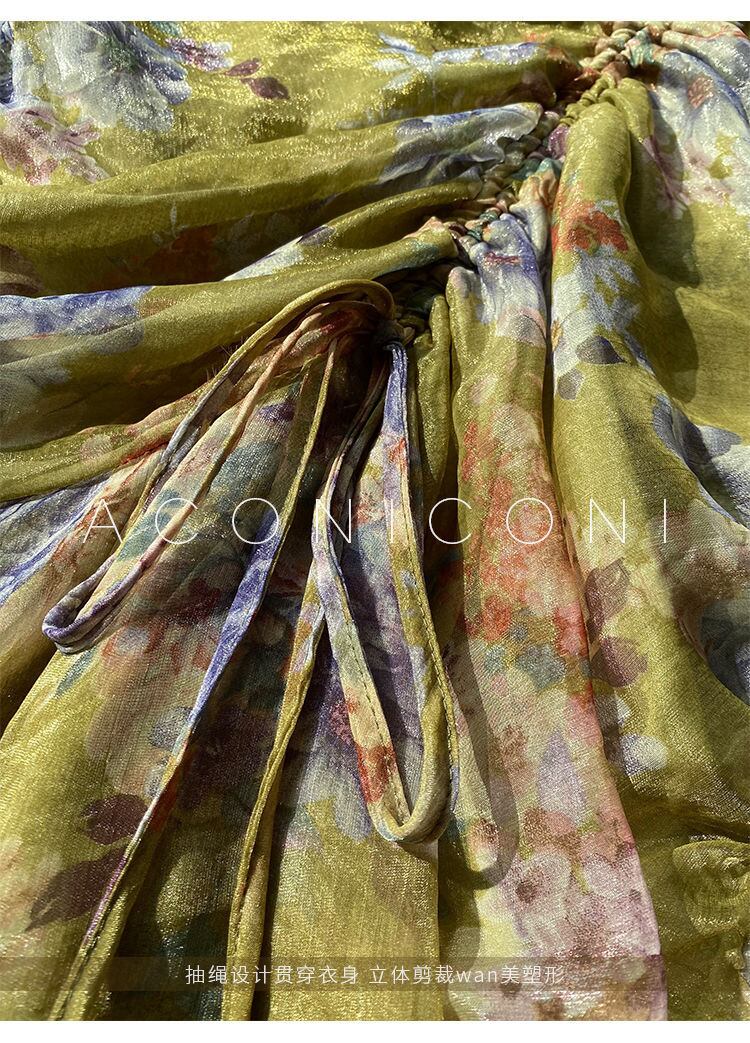 Nomikuma 印刷夏ドレス巾着半袖 V ネック Vestido 不規則フリル A ラインドレス ショート ハーフスリーブ サマー 夏物 Vネック Aライン