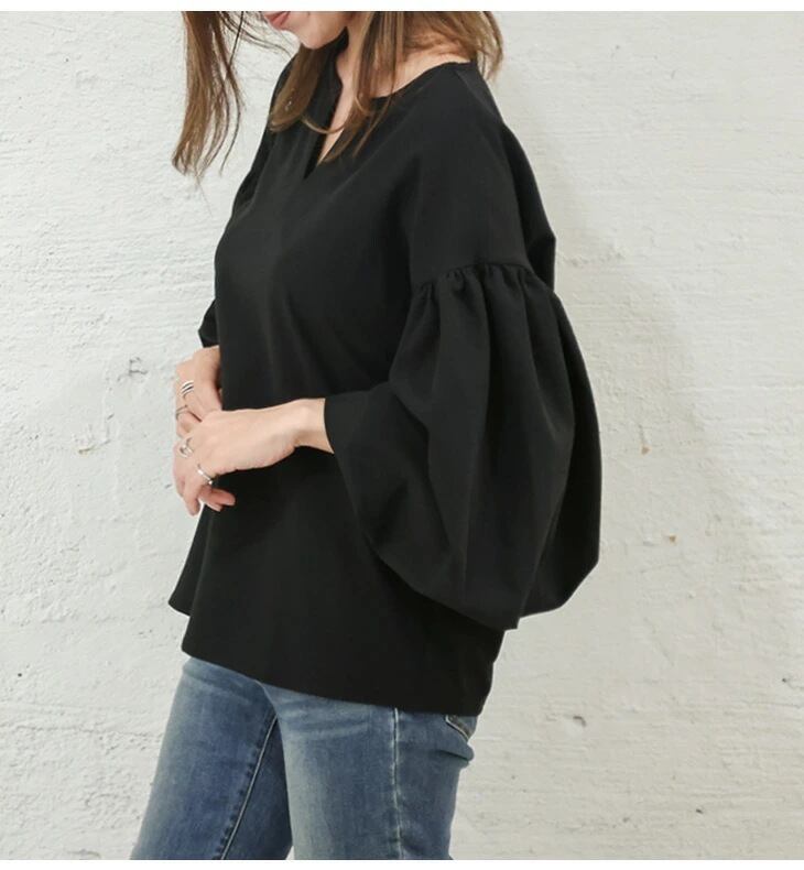Nomikuma スタイル因果ストライプブラウスランタンスリーブ V ネックシャツ因果プルオーバートップス Vネック