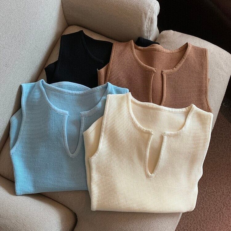 Nomikuma 夏スリムニットタンクトップストレッチベストトップスボトミング Y2k トップ サマー 夏物