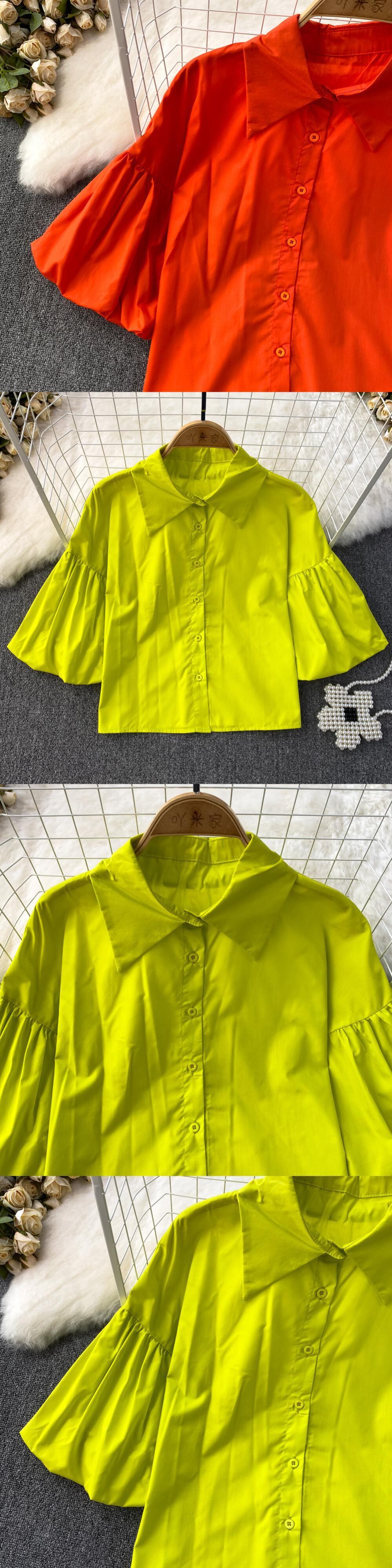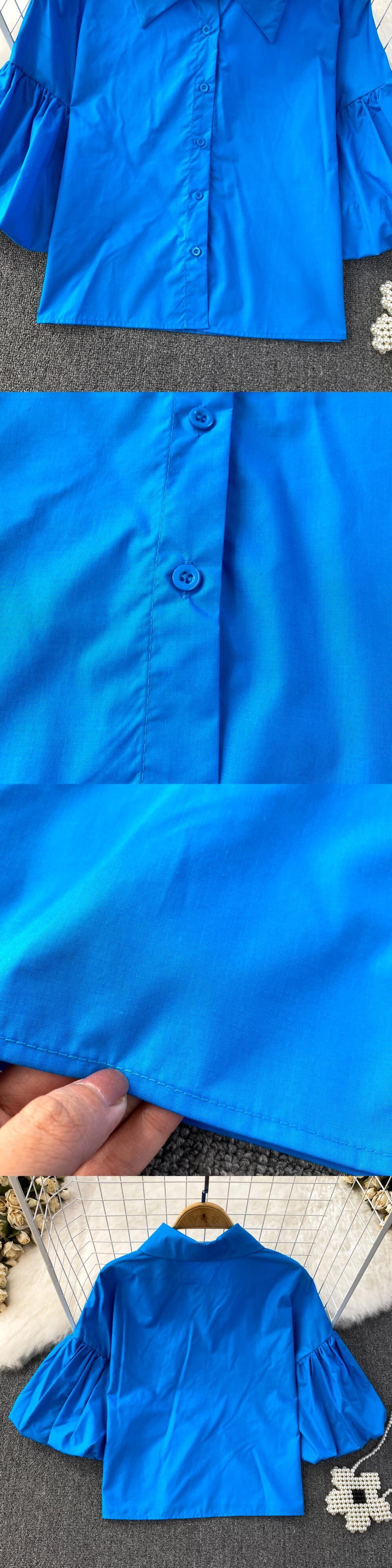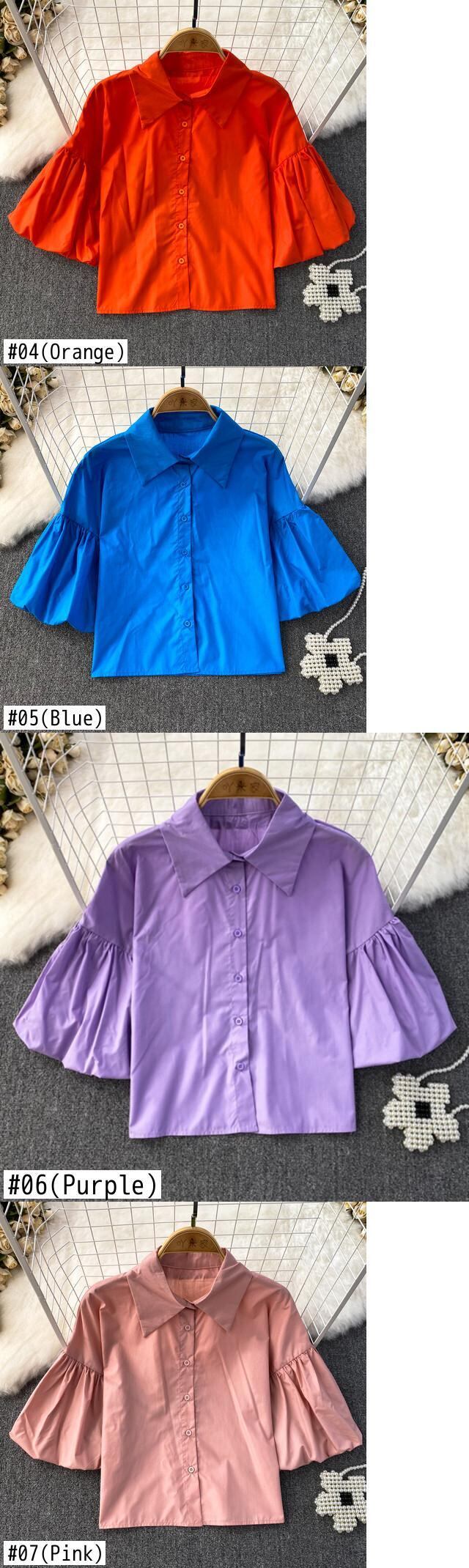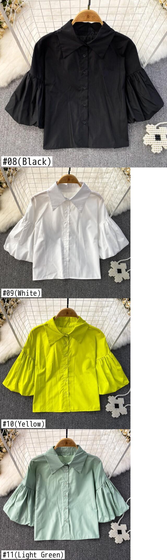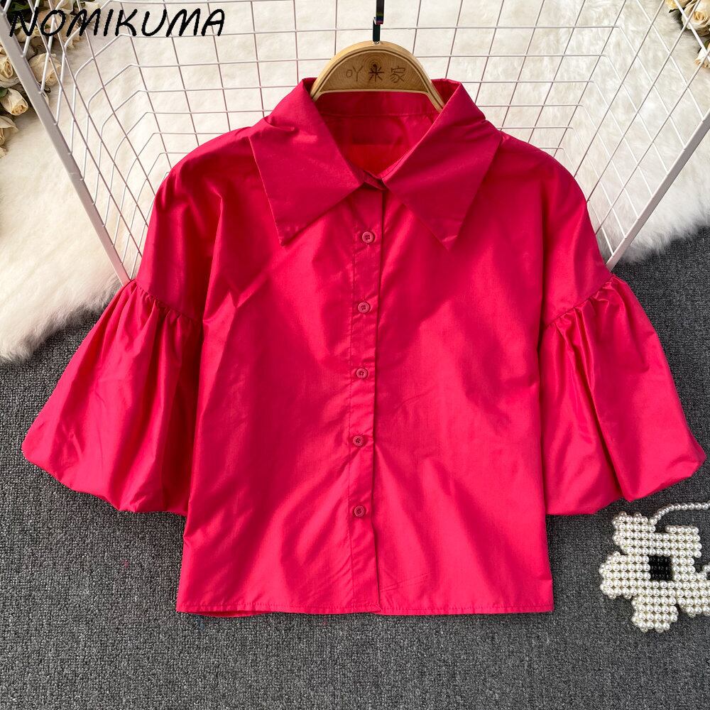 Nomikuma Sumemr ランタン スリーブ ブラウス トップス ターンダウン カラー シック スイート ソリッド シャツ ランタンスリーブ 大人ガーリー スウィート キュート カジュアル ソリッドカラー