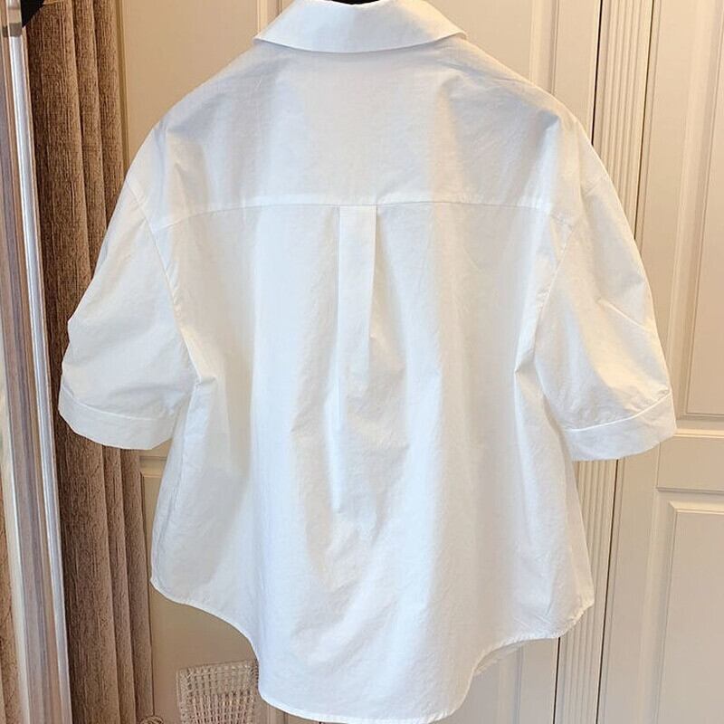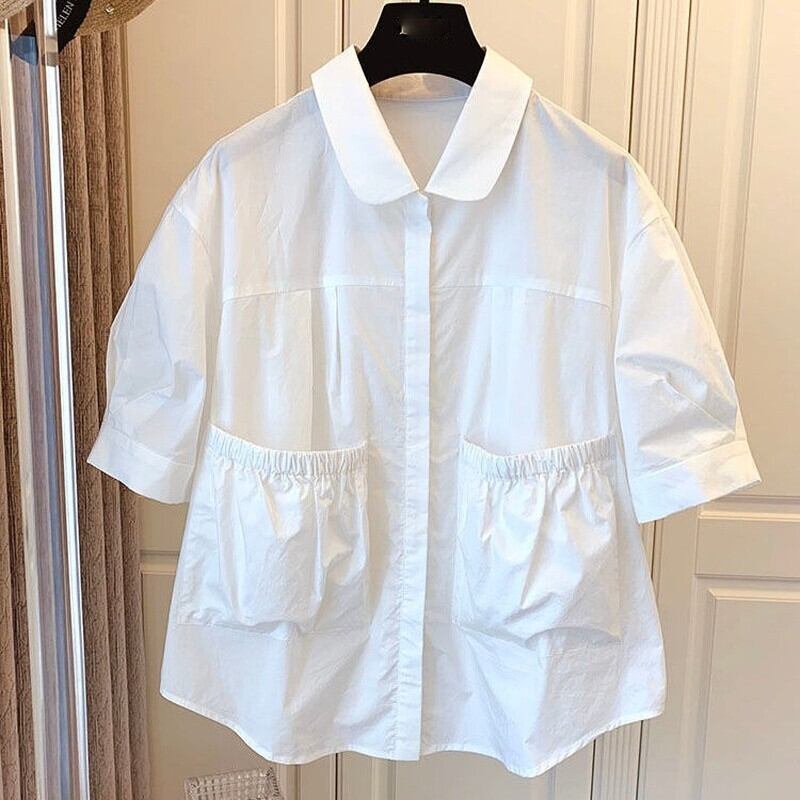 Nomikuma 因果甘いドールシャツパフスリーブピーターパン襟ブラウス夏ひだダブルポケットトップ 6J143 大人ガーリー スウィート キュート カジュアル サマー 夏物