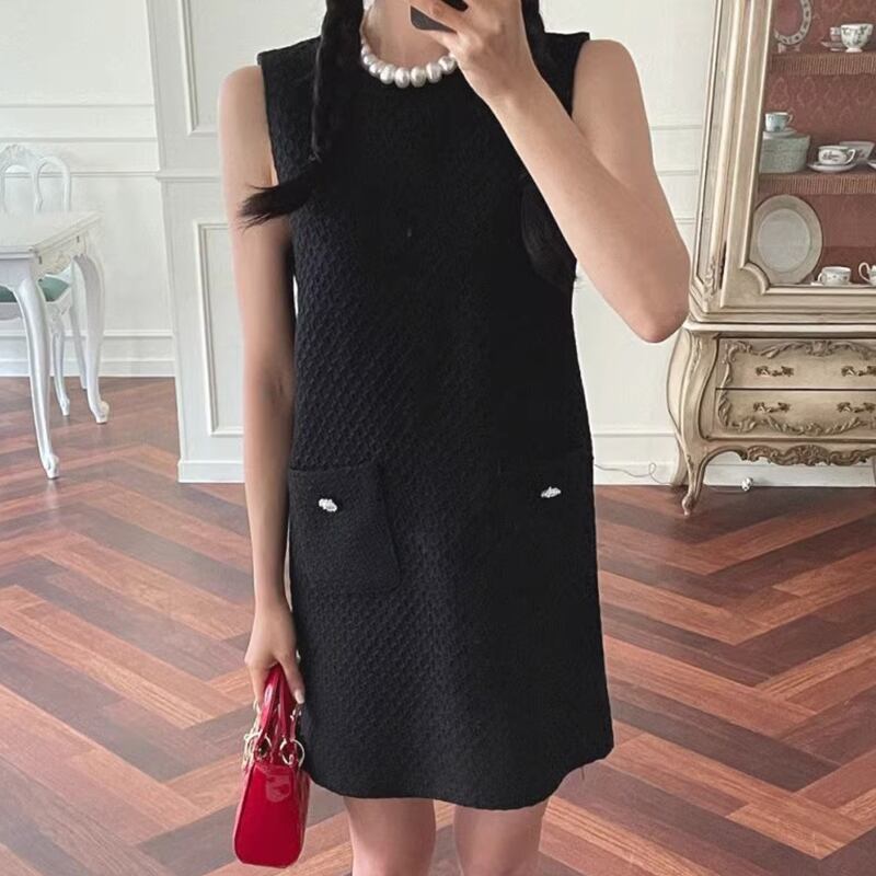 Nomikuma ツイードノースリーブ O ネックタンク Vestidos A ラインサマードレスマキシドレス 夏物 Oネック Aライン