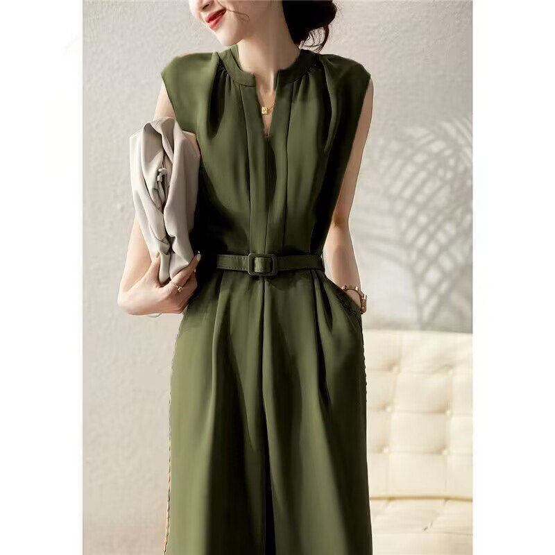 Nomikuma 夏ノースリーブジャンプスーツ因果ロングパンツボディスーツベルトスリムウエストロンパース サマー 夏物 ハーネス