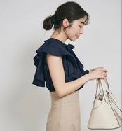 Nomikuma 夏スタイルフリルプルオーバートップス蝶ネクタイシャツ甘いトップ リボン 大人ガーリー スウィート キュート カジュアル サマー 夏物 ソリッドカラー