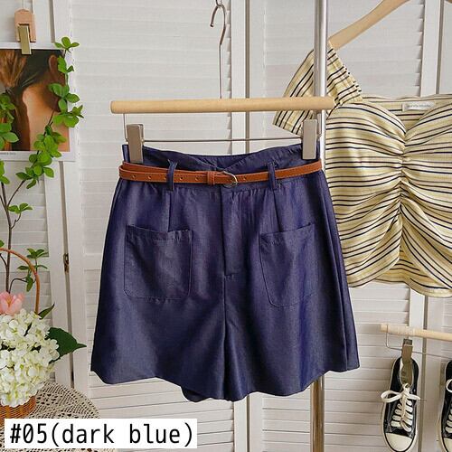 Nomikuma ウエストスーツショーツベルト付き夏ボトムスカジュアルソリッドワイドレッグショート Feminimos サマー 夏物 ハーネス ブルマー ワイドパンツ ソリッドカラー