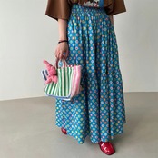 Nomikuma カラフル花柄パッチワークゴススカートレディース夏甘い因果 A ラインミッドレングス Y2k スカート 大人ガーリー スウィート キュート カジュアル サマー 夏物 Aライン