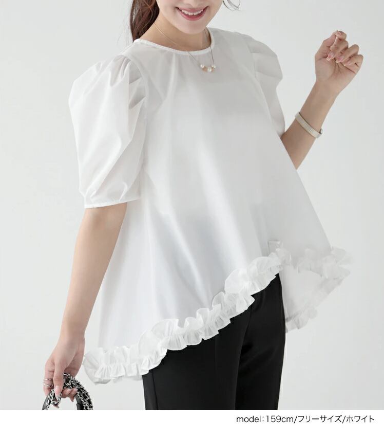Nomikuma スタイル因果フリルパッチワーク不規則甘いブラウスシックパフスリーブ O ネック人形シャツ MUJER 大人ガーリー スウィート キュート カジュアル Oネック