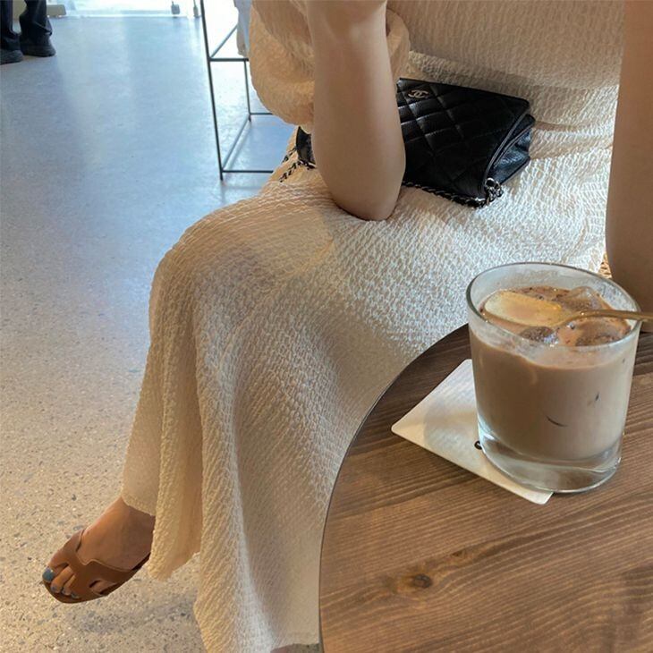 Nomikuma 夏パフスリーブ O ネックスタイルサマードレススリムウエスト A ラインロングローブマキシドレス 夏物 Oネック Aライン