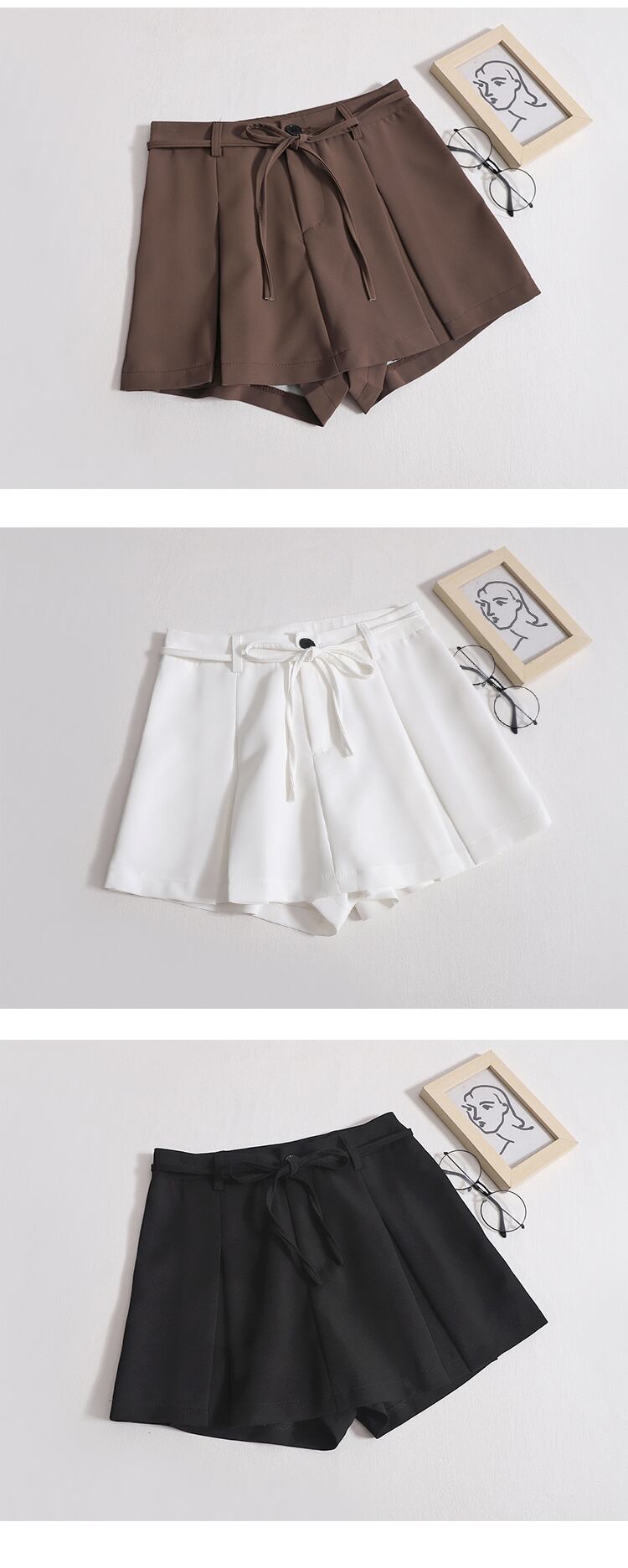 Nomikuma 因果レースアップスーツショーツ夏ボトムスウエストワイドレッグショート Feminimos Pantalones サマー 夏物 ブルマー ワイドパンツ
