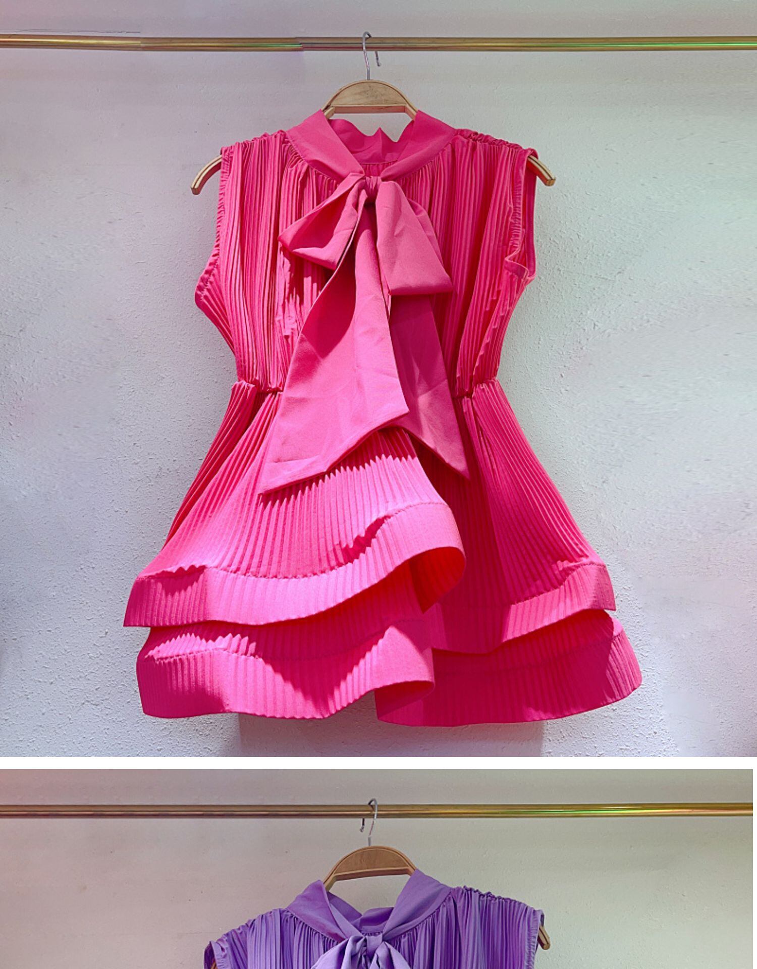 Nomikuma ノースリーブプリーツブラウス夏スリムウエストシャツ弓包帯デ リボン サマー 夏物