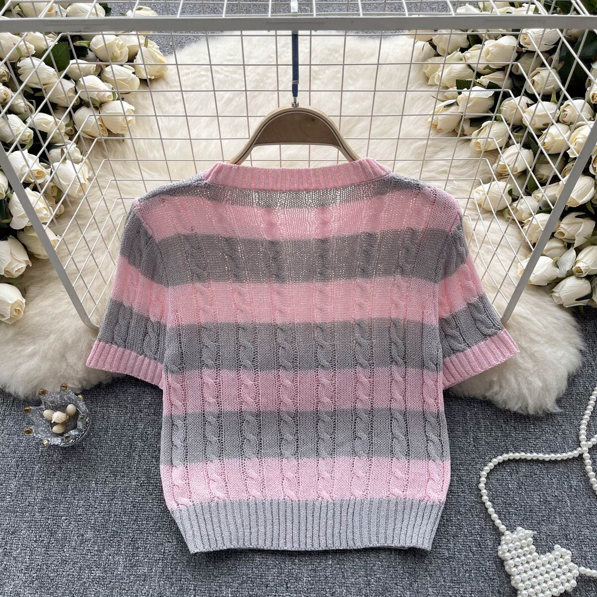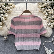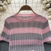 Nomikuma 夏コントラストカラーストライプニットショート Tシャツトップス夏因果 O ネックプルオーバーセーターグラフィック Tシャツ サマー 夏物 Oネック