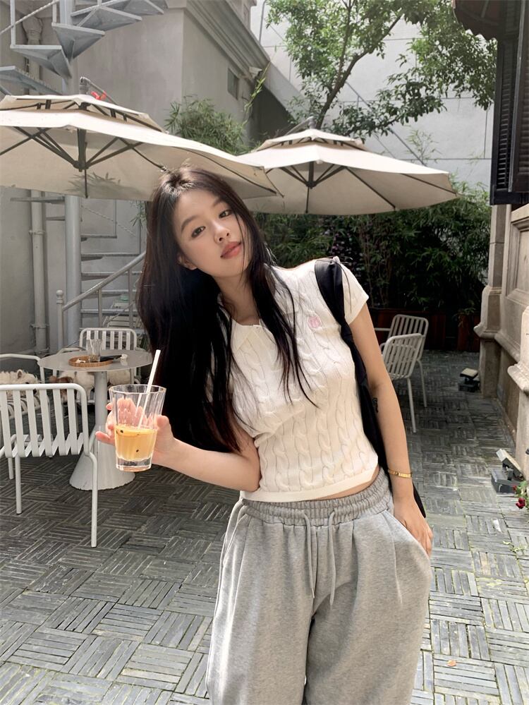 Nomikuma ニット半袖スリムグラフィック Tシャツターンダウンカラー Y2k トップサマーシャツ ショート ハーフスリーブ 夏物