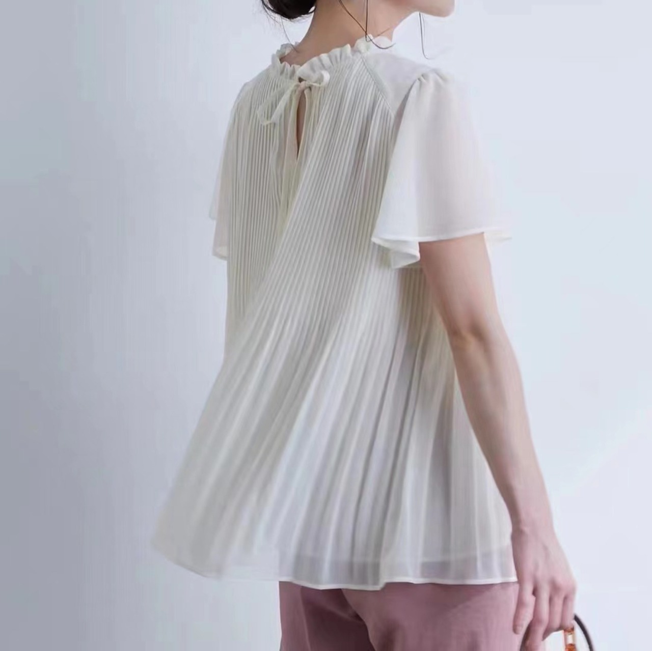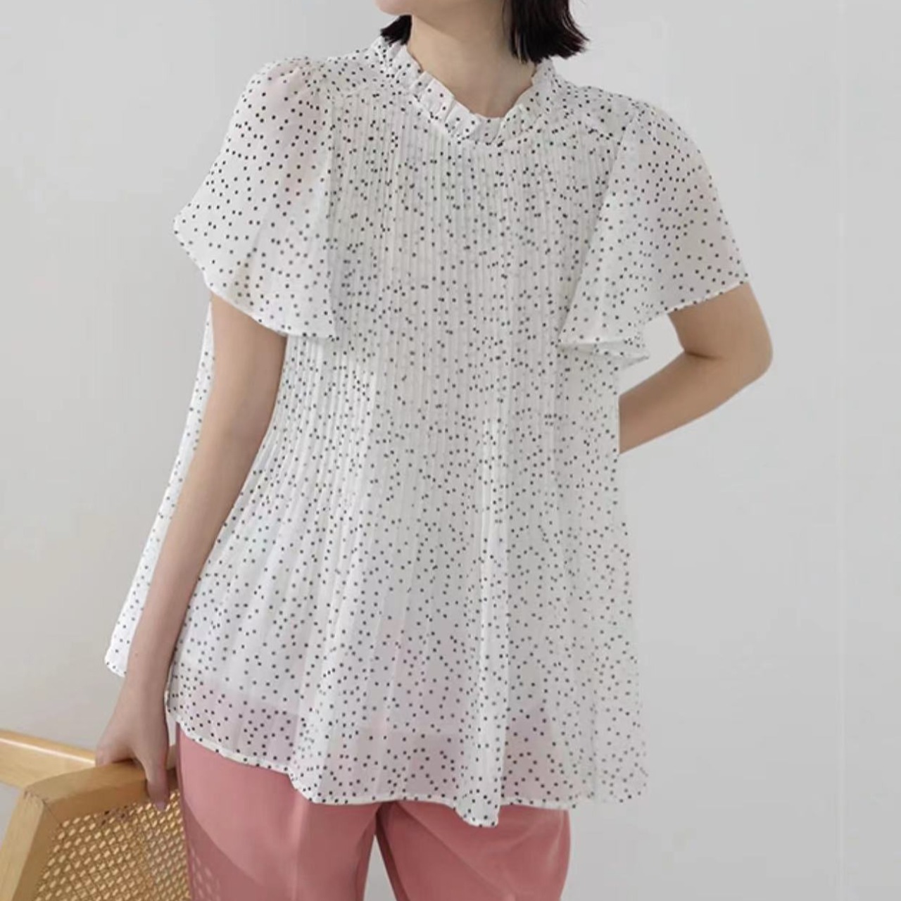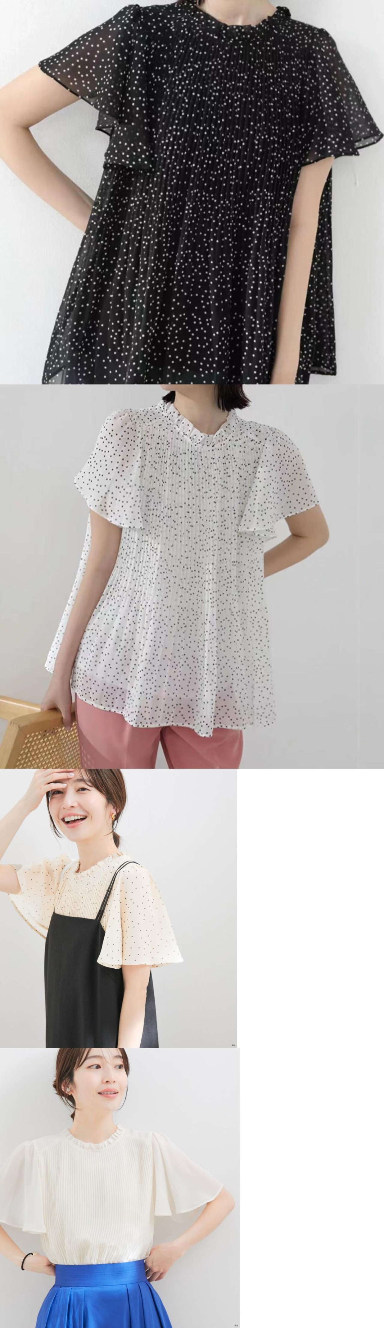 みくま流スウィートドールシャツ シフォンバタフライスリーブ スタンドネックシフォンブラウス Sumemr Causal De 大人ガーリー キュート カジュアル