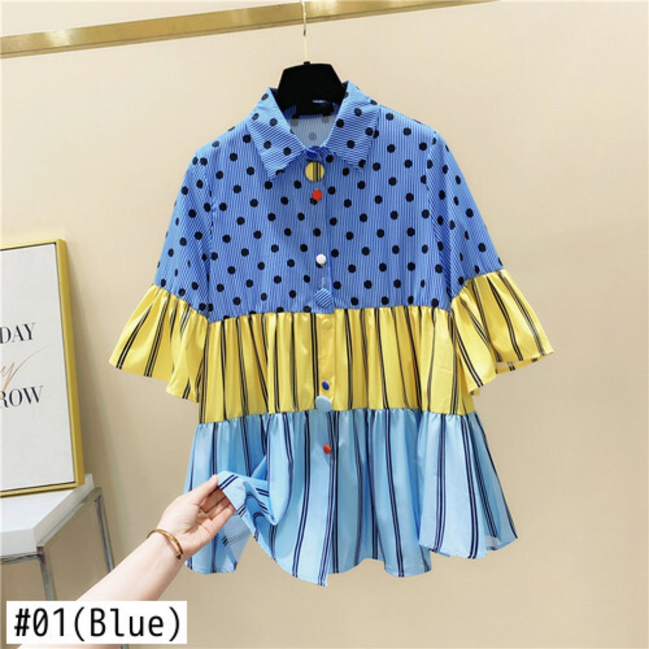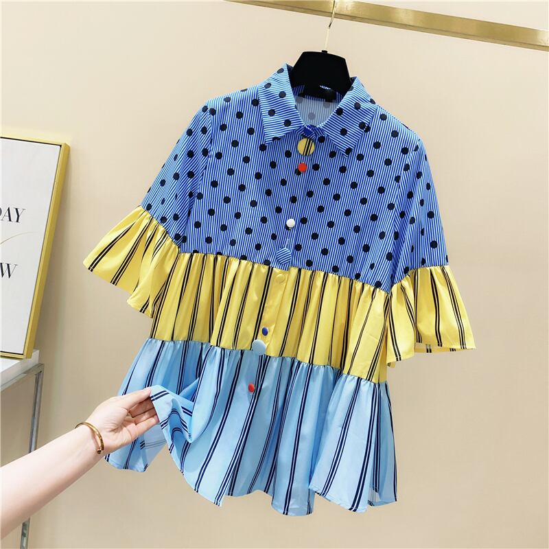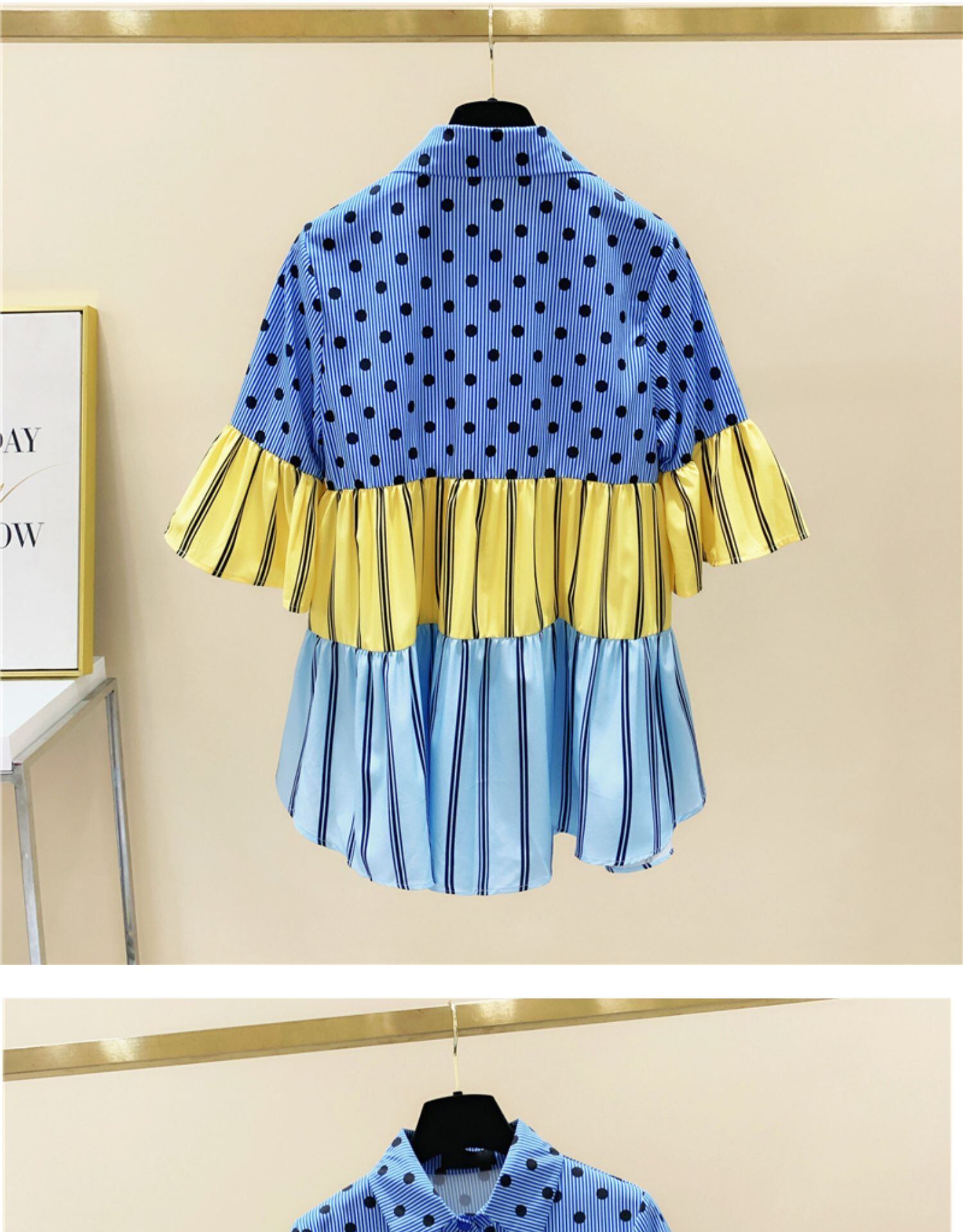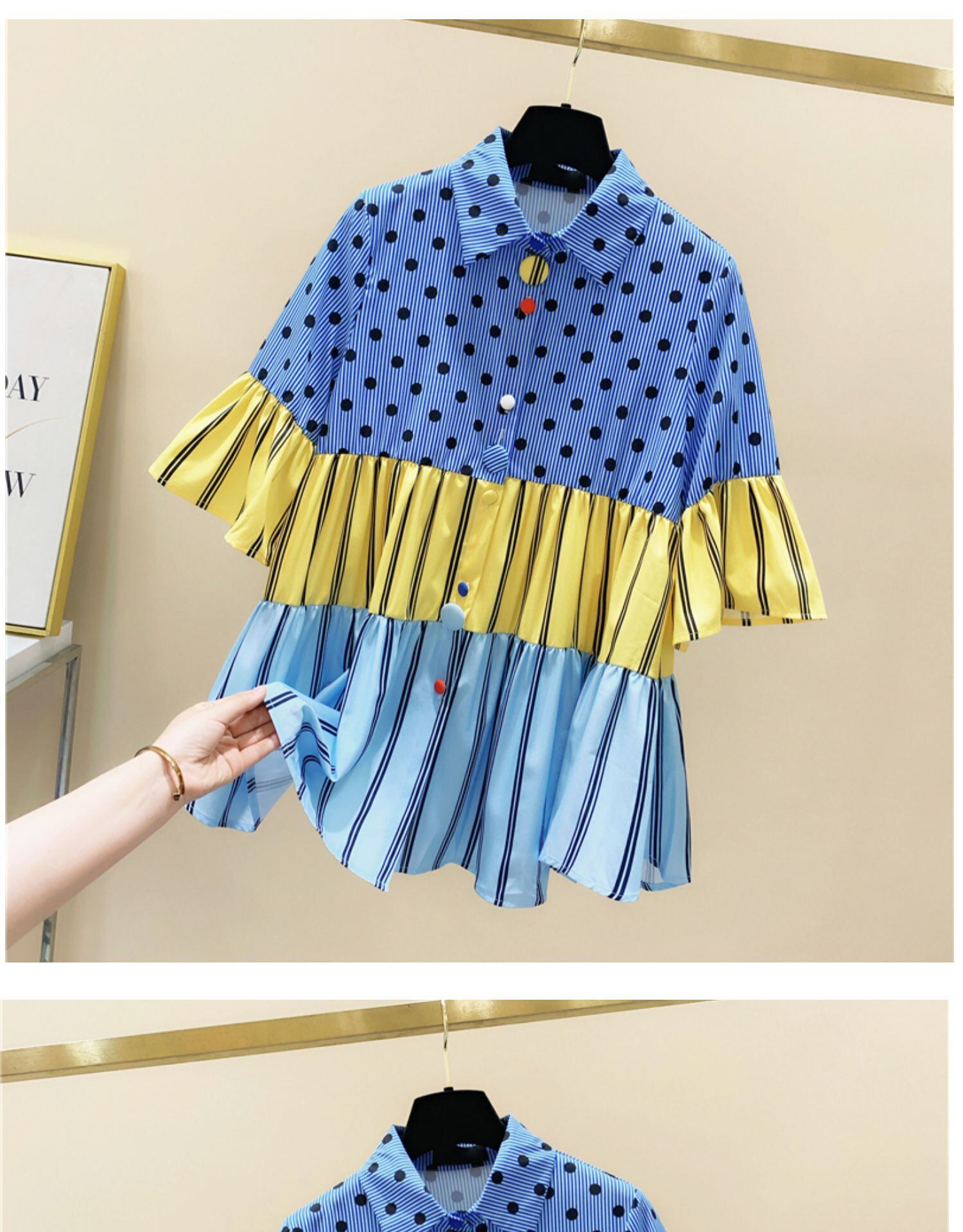 Nomikuma 夏ヒットカラーストライプブラウスシック半袖ターンダウンカラーシャツカジュアルシングルブレスト ハーフスリーブ サマー 夏物