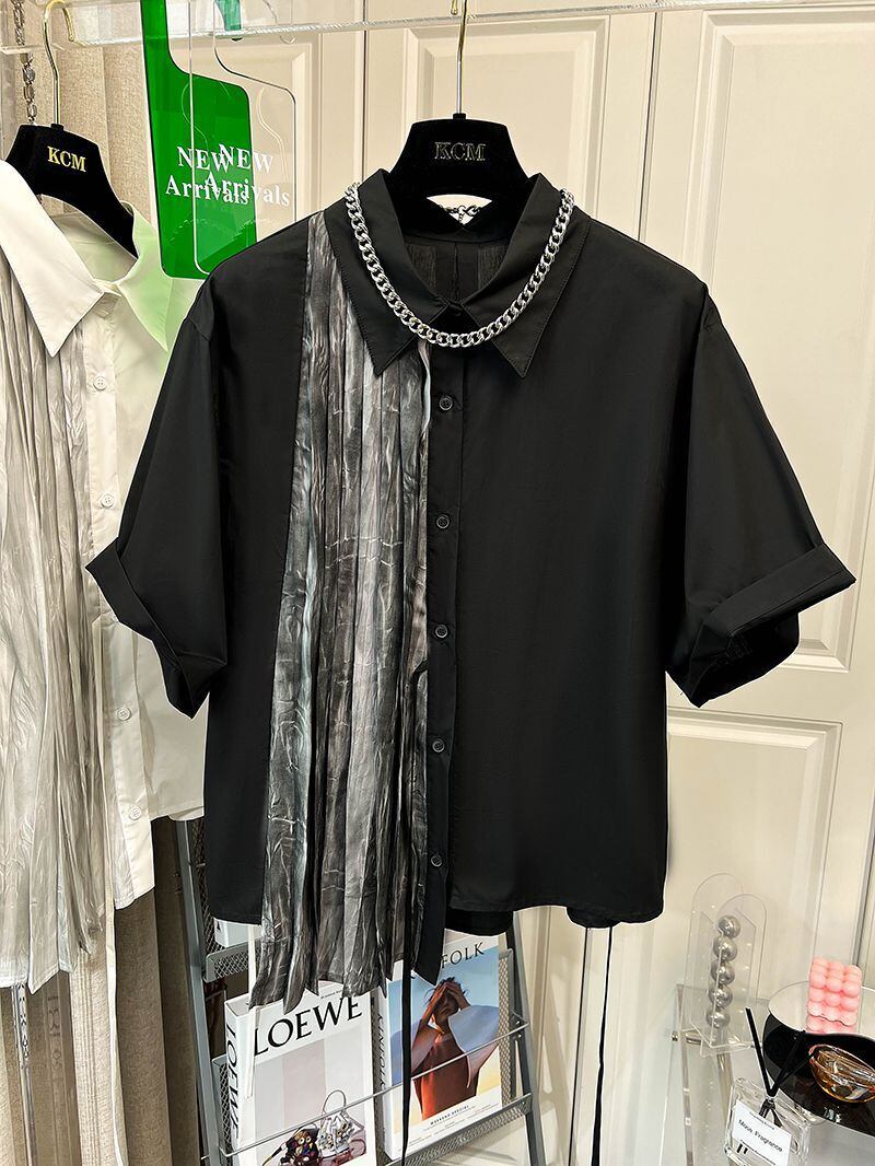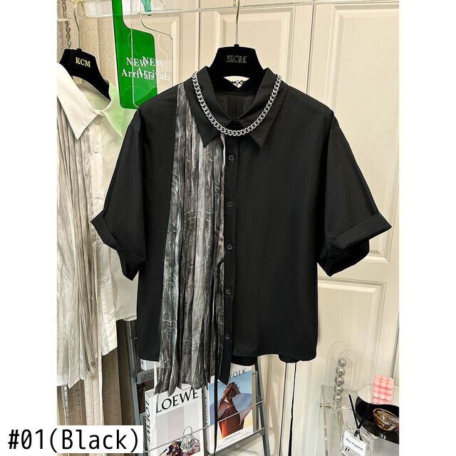Nomikuma 半袖ブラウス夏カジュアルパッチワークシャツターンダウンカラートップ ショート ハーフスリーブ サマー 夏物