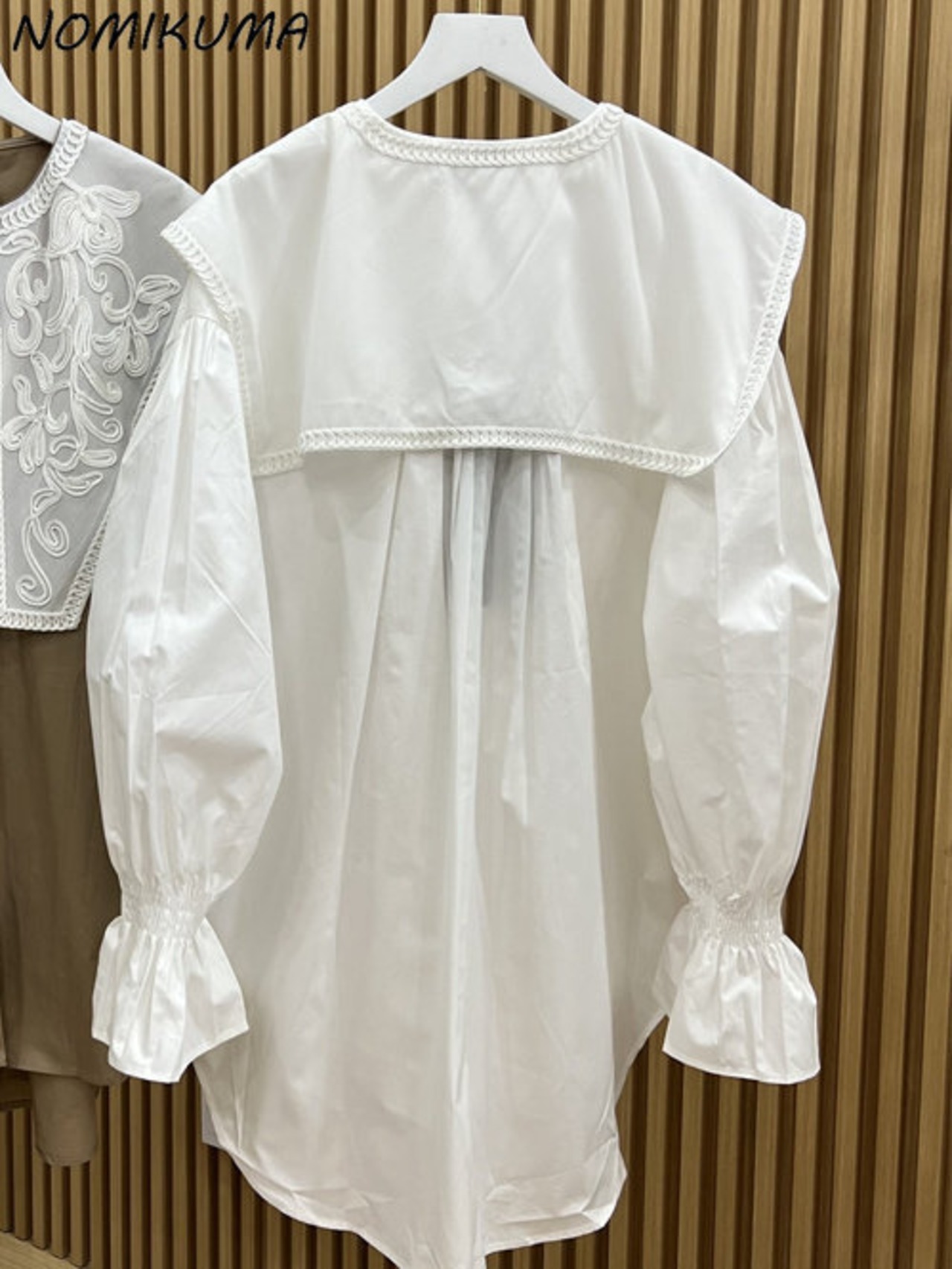 Nomikuma 因果フックセーラー襟ブラウストップス長袖因果カーディガントップス春秋シャツ ロング スプリング 春物 オータム 秋物