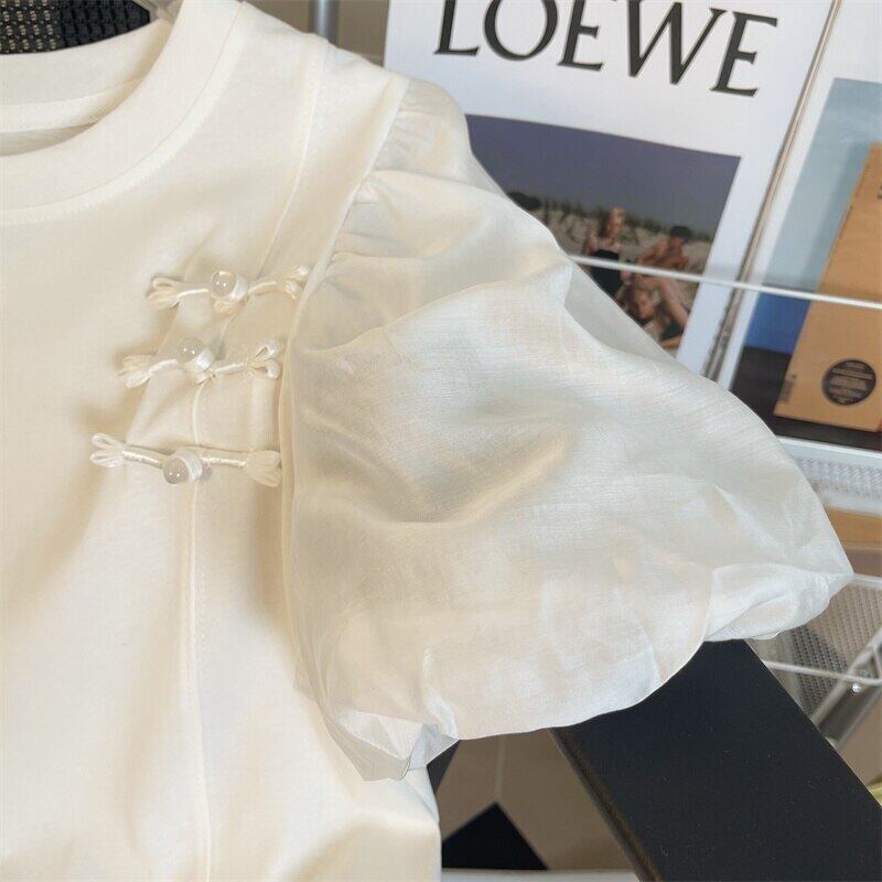 Nomikuma パッチワークパフスリーブゴスシャツ夏 O ネック Y2k トップシックグラフィック Tシャツ Camisetas サマー 夏物 Oネック