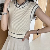 Nomikuma ヒットカラーニットベストシックタンクトップスリムショートノースリーブ O ネックベスト 半袖 ハーフスリーブ Oネック